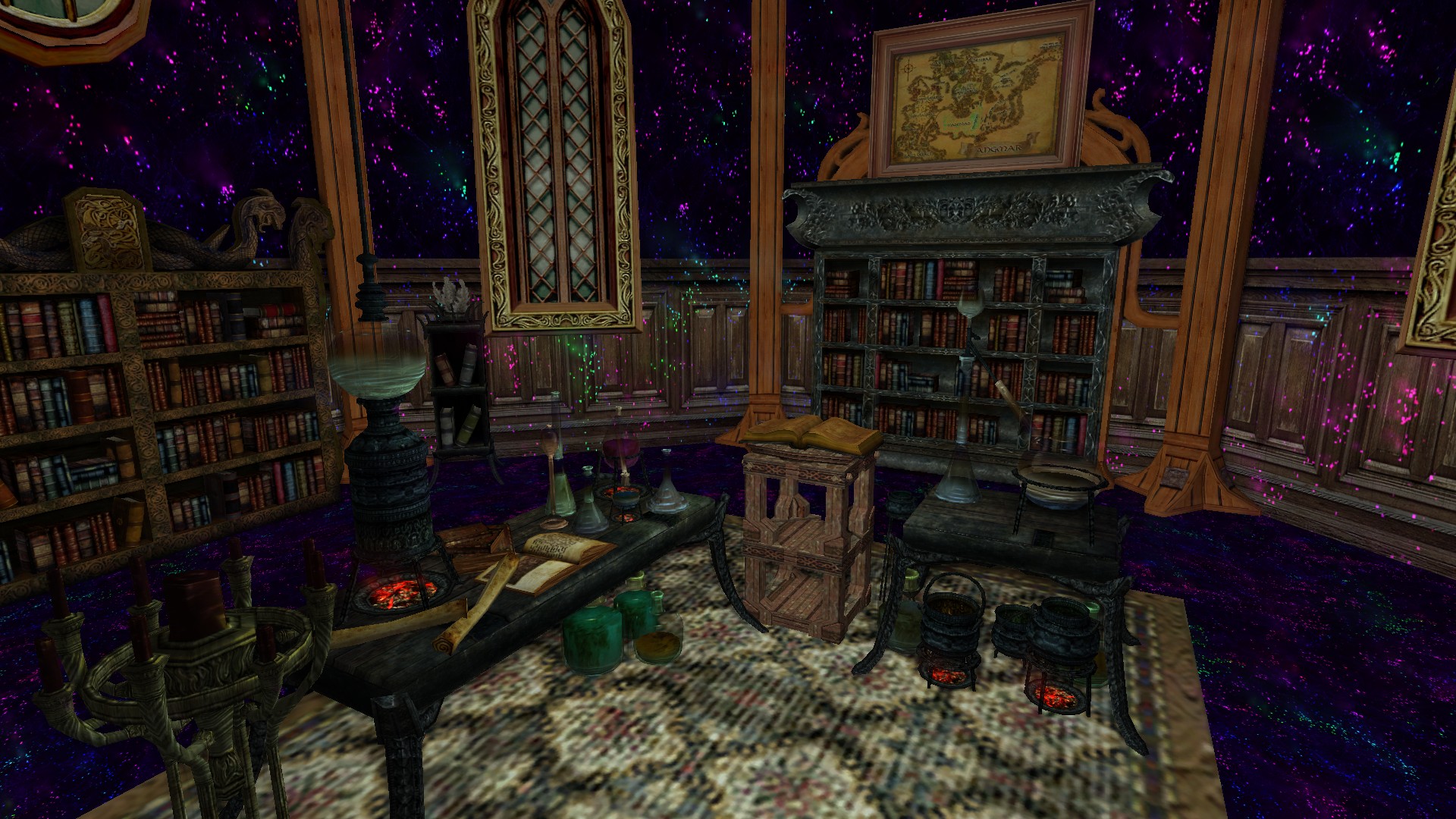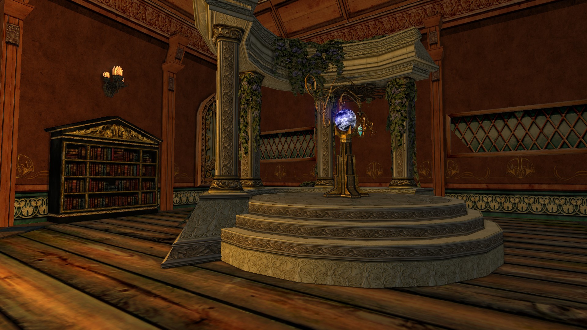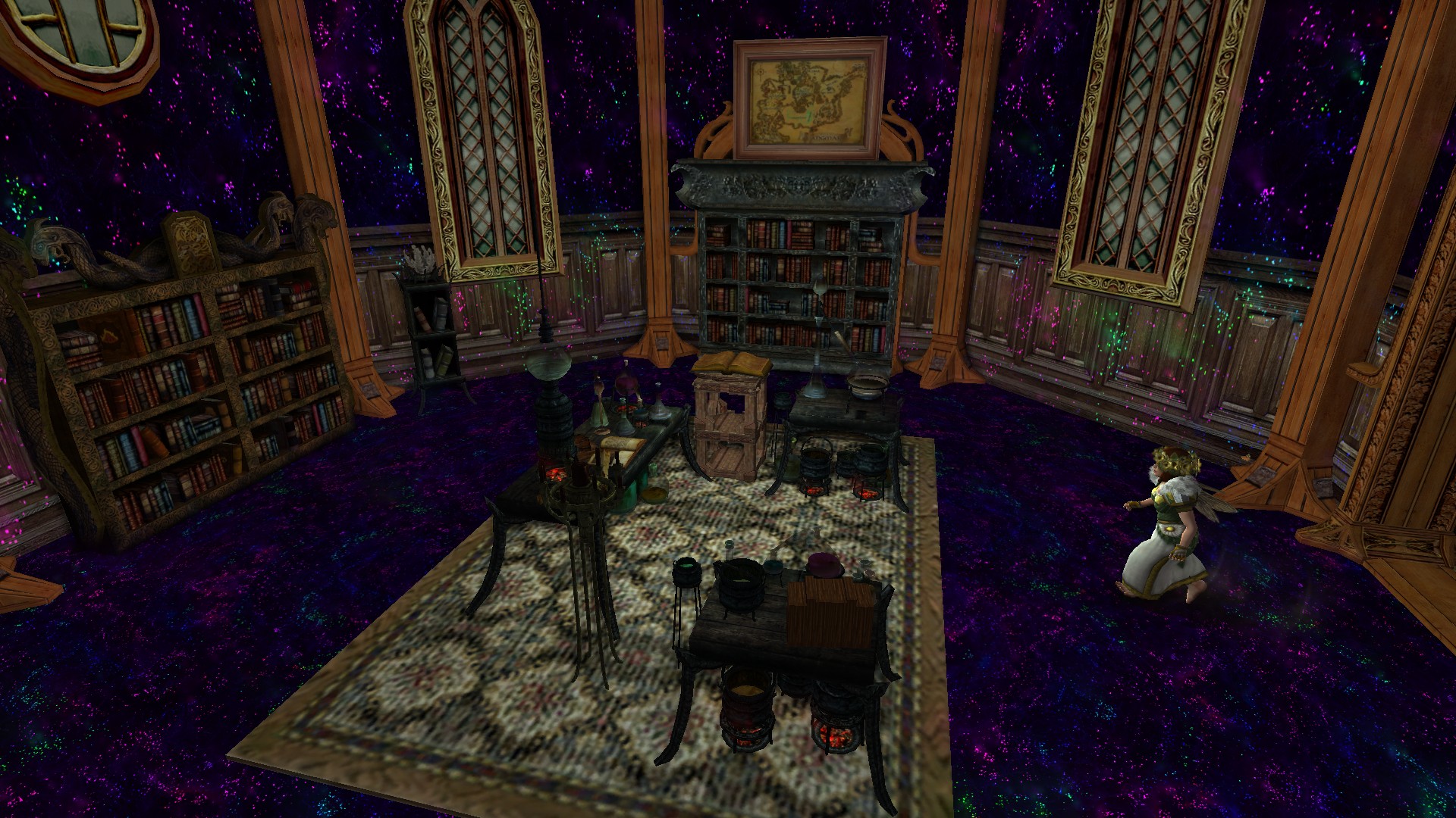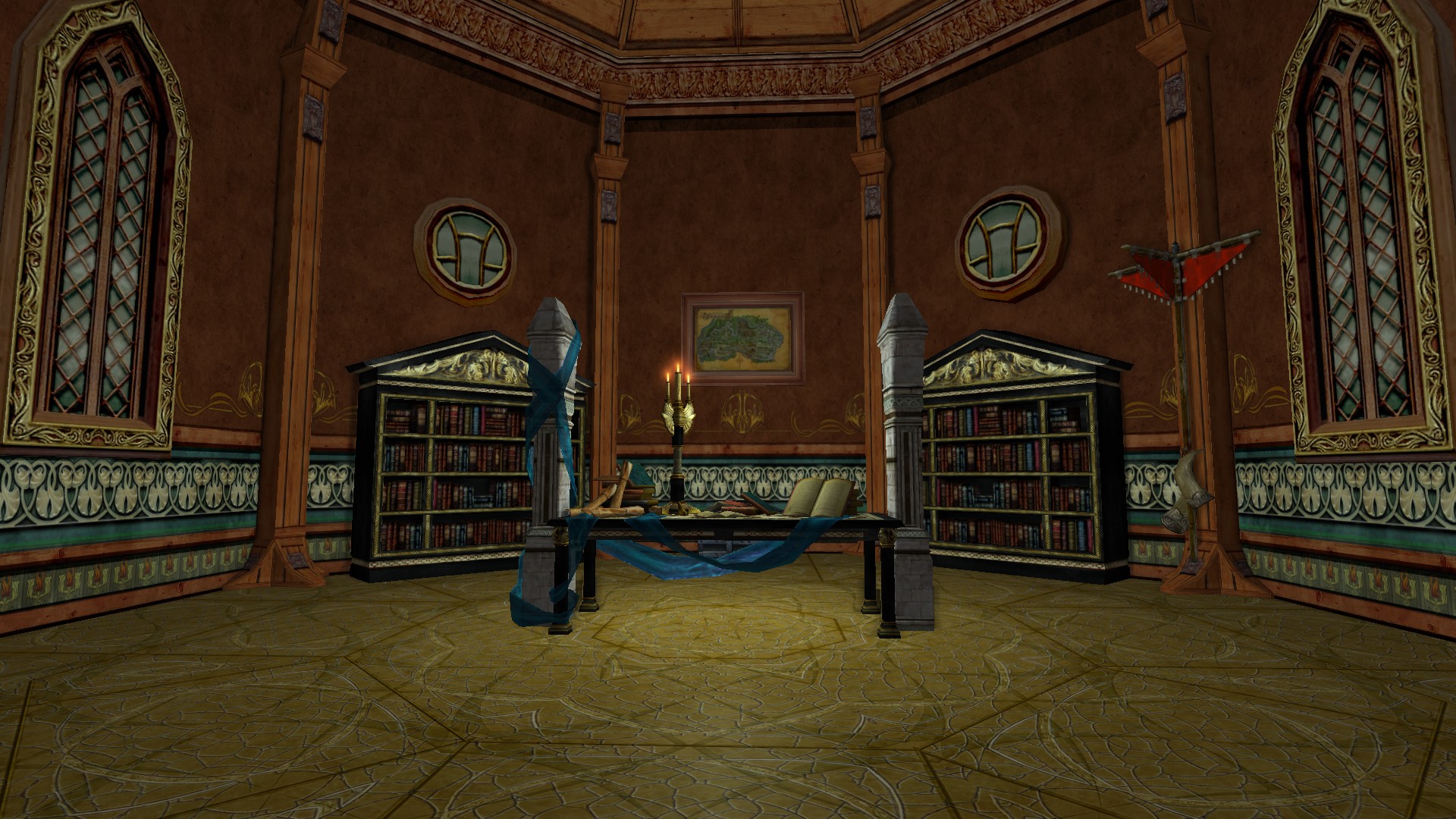 "This house is part of the decoration project for the Menellant neighborhood to become an estate for my main account (Elrandor). In this project, the kinship house at 2, Waterbank Road is the house of knowledge/library, and contains a small private room dedicated to occult arts and alchemy.