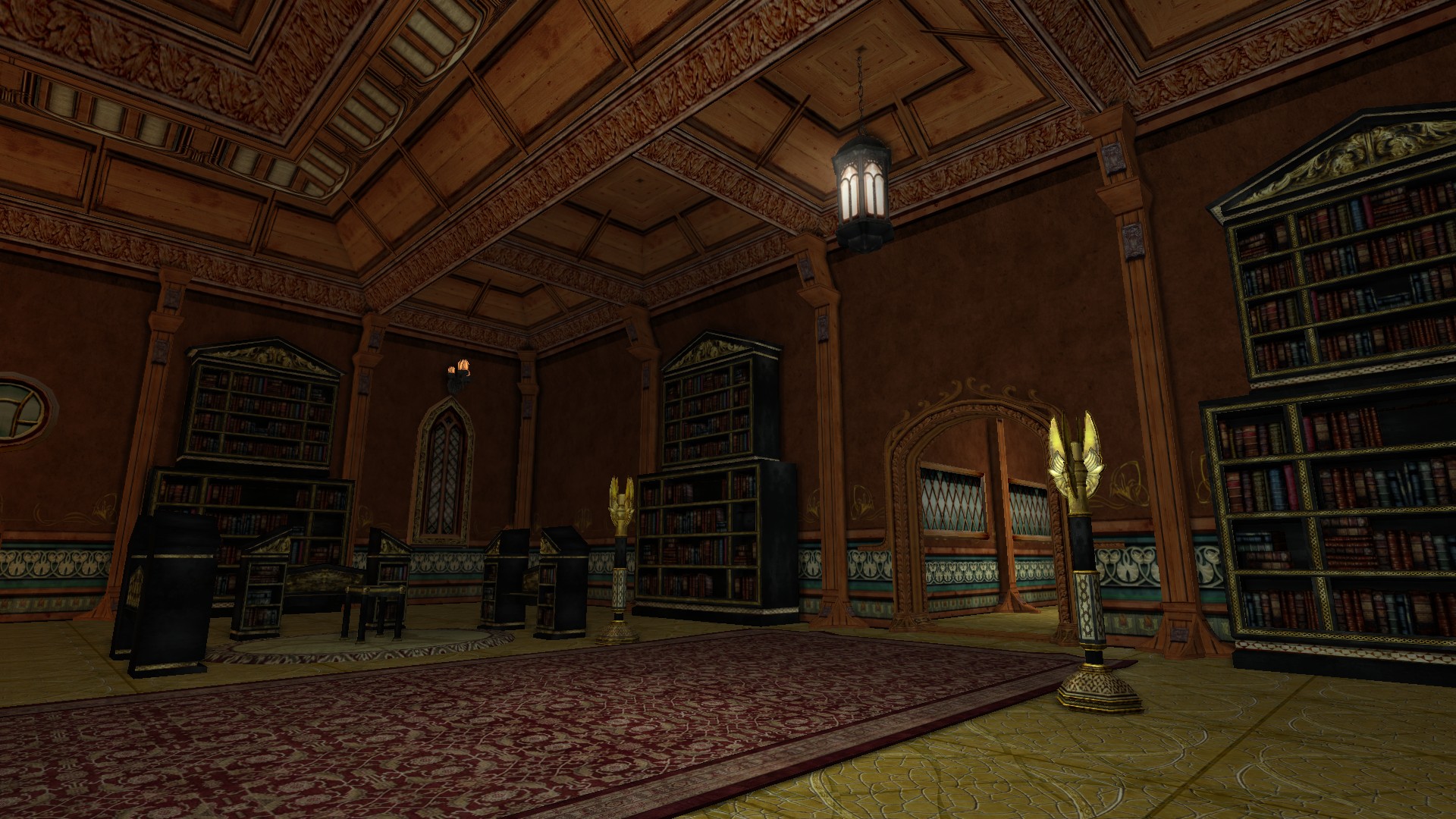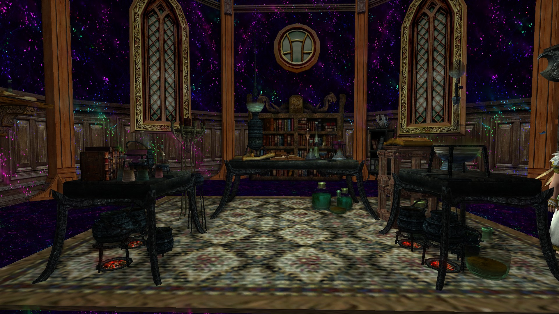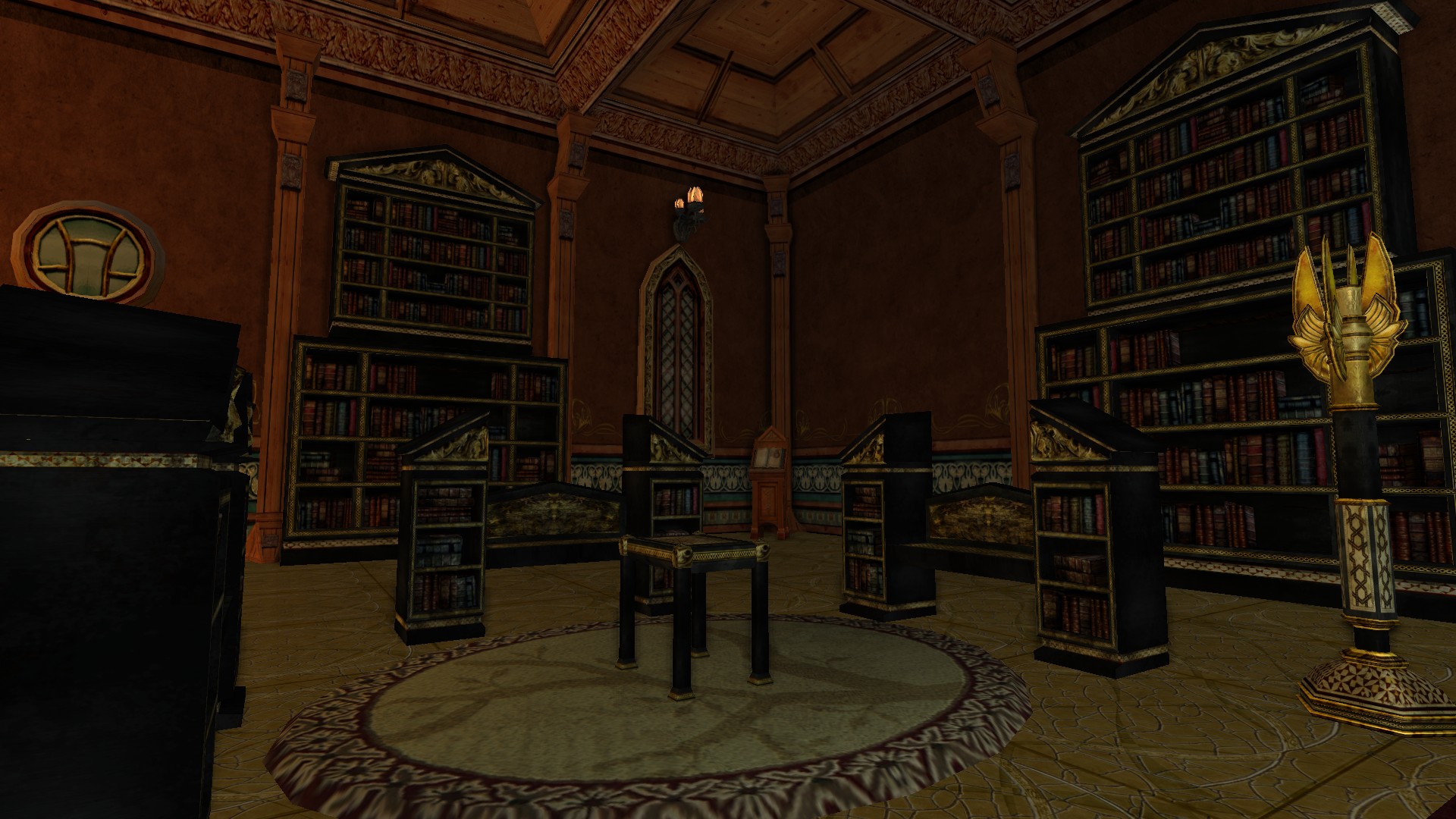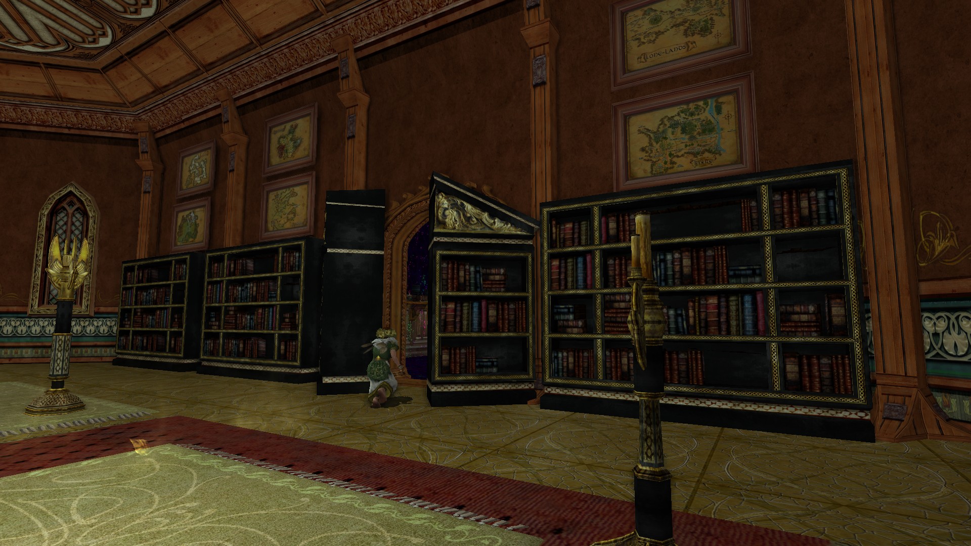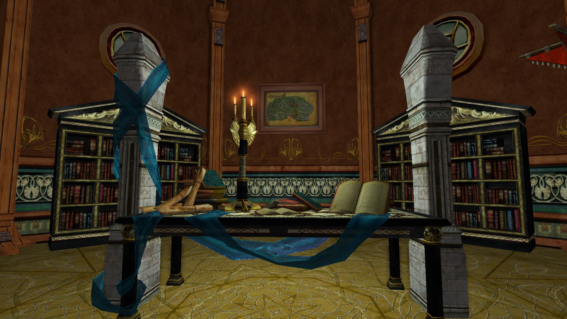 "This house is part of the decoration project for the Menellant neighborhood to become an estate for my main account (Elrandor). In this project, the kinship house at 2, Waterbank Road is the house of knowledge/library, and contains a small private room dedicated to occult arts and alchemy.