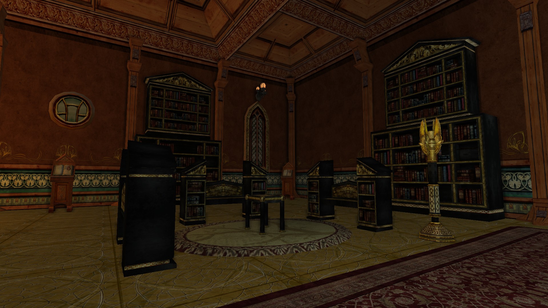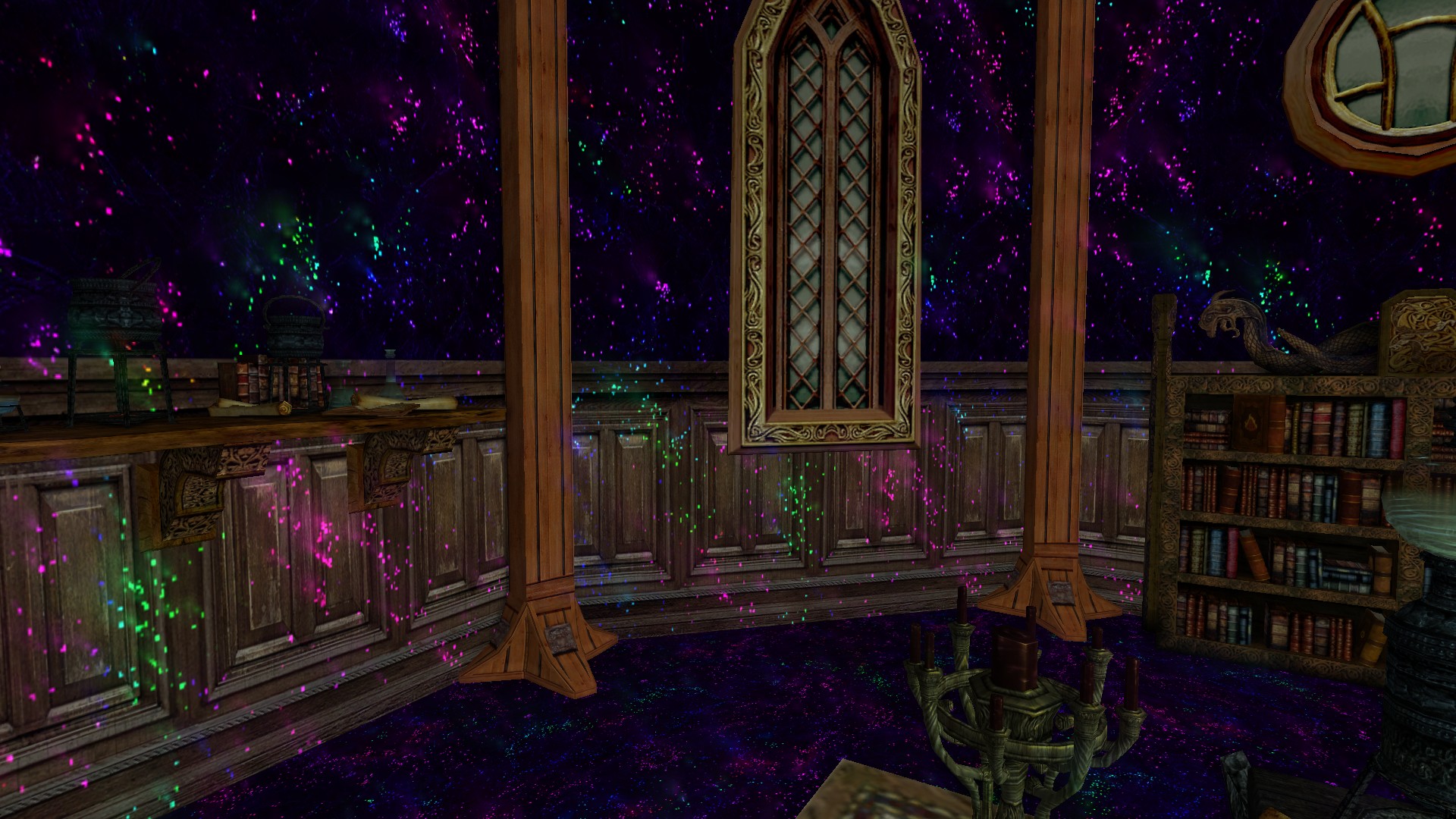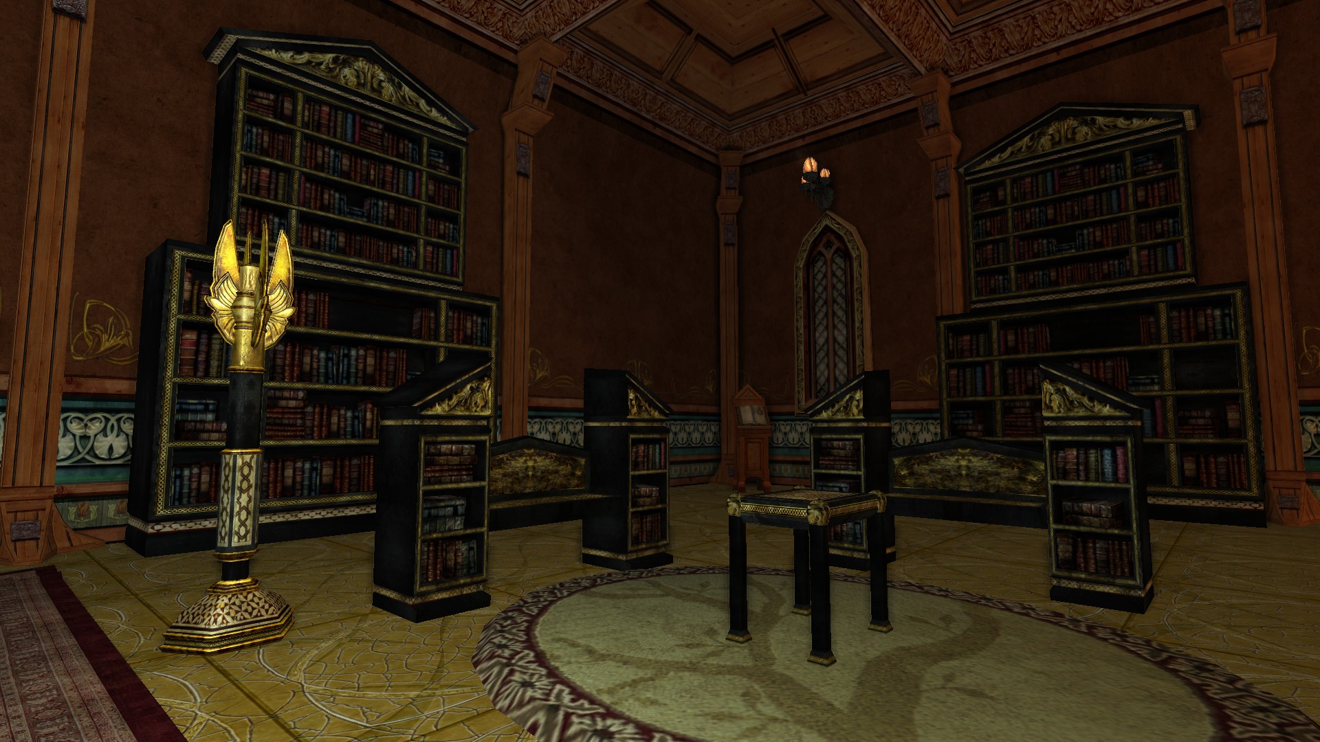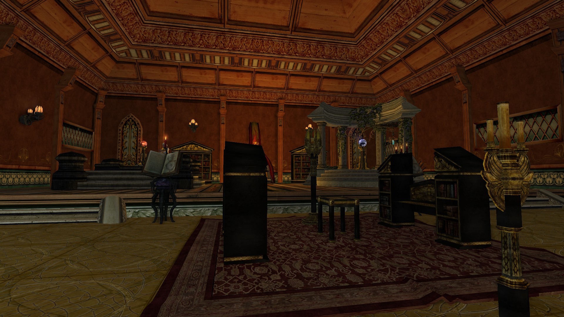 "This house is part of the decoration project for the Menellant neighborhood to become an estate for my main account (Elrandor). In this project, the kinship house at 2, Waterbank Road is the house of knowledge/library, and contains a small private room dedicated to occult arts and alchemy.