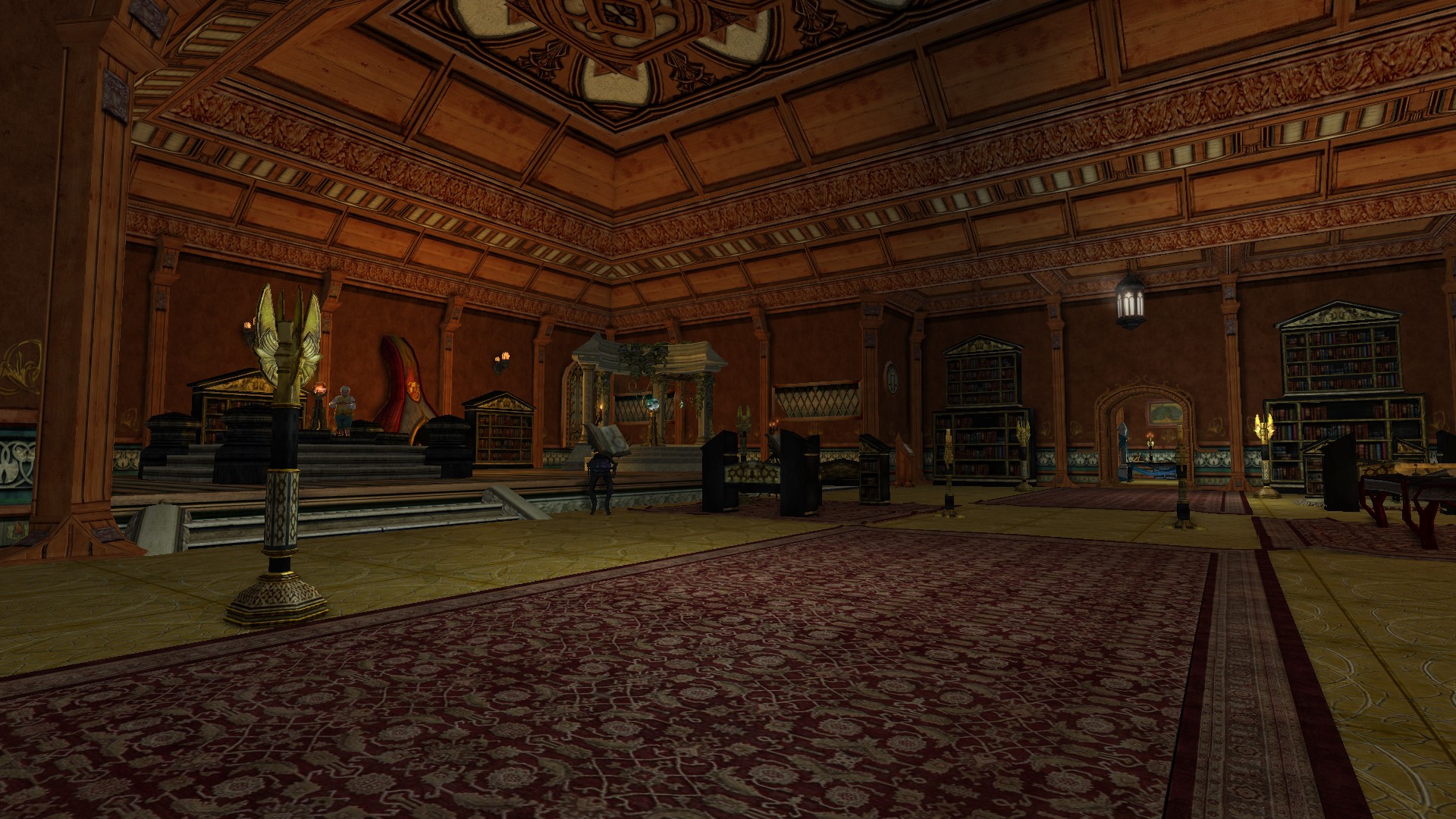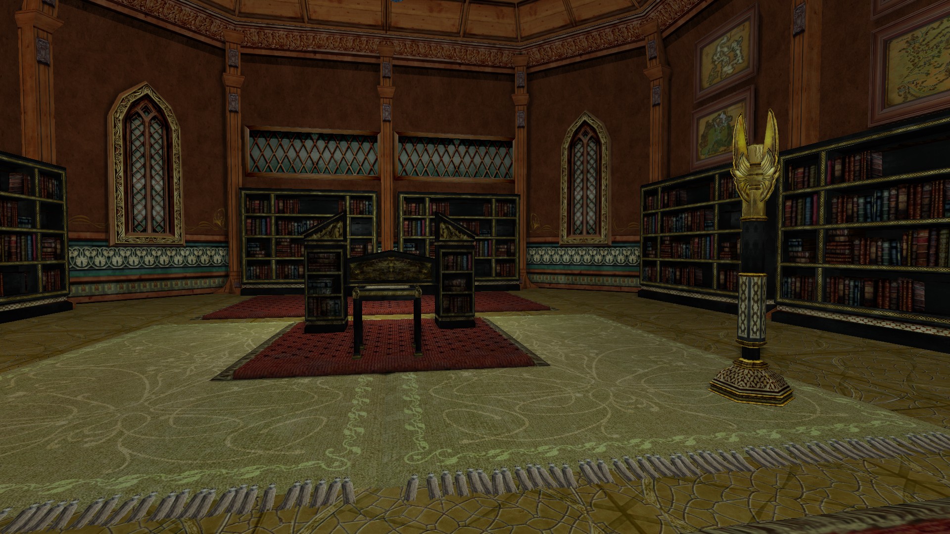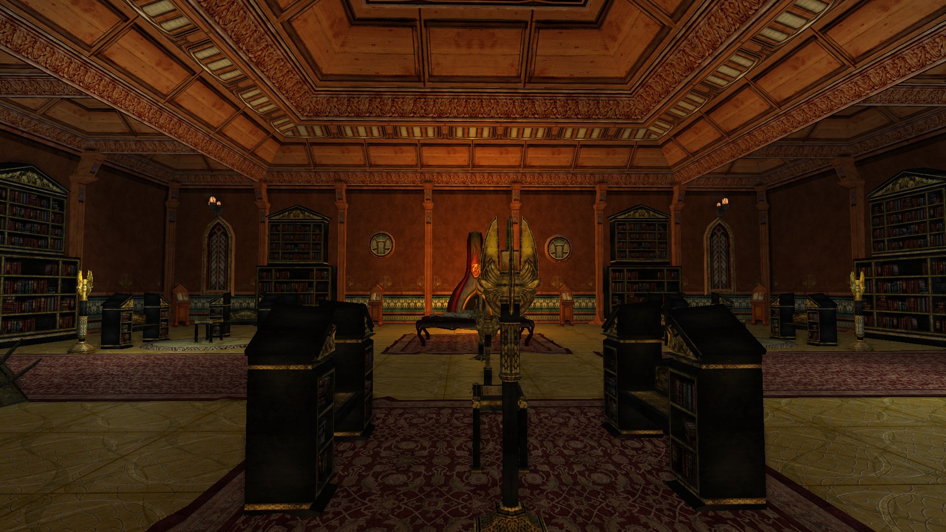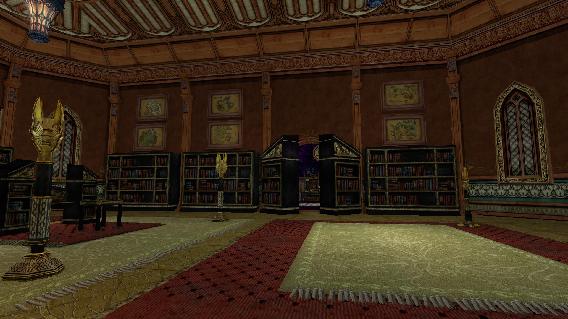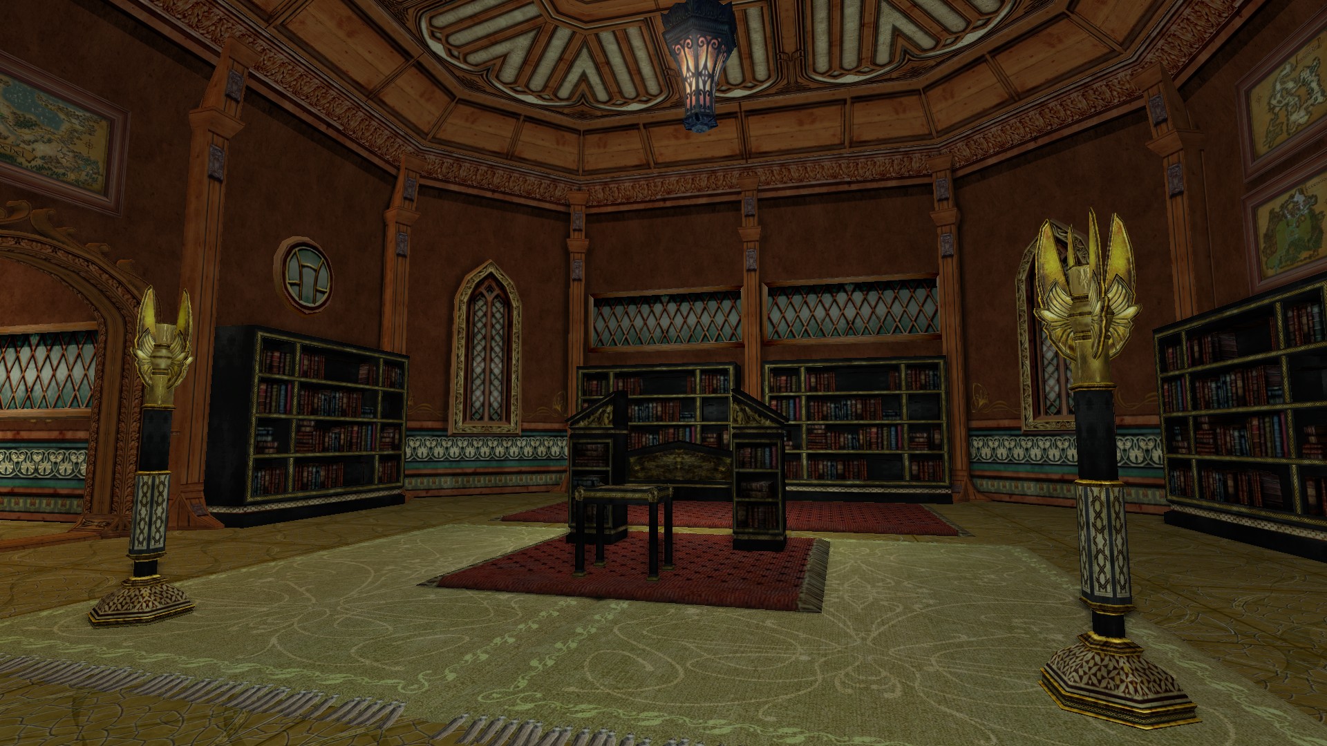 "This house is part of the decoration project for the Menellant neighborhood to become an estate for my main account (Elrandor). In this project, the kinship house at 2, Waterbank Road is the house of knowledge/library, and contains a small private room dedicated to occult arts and alchemy.