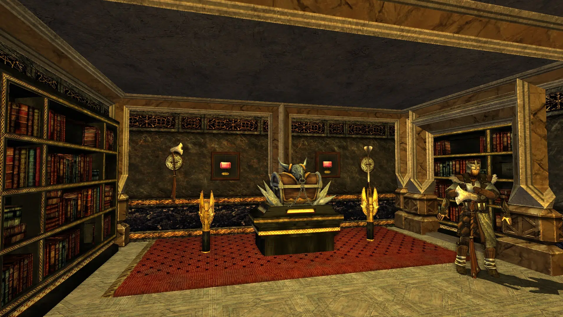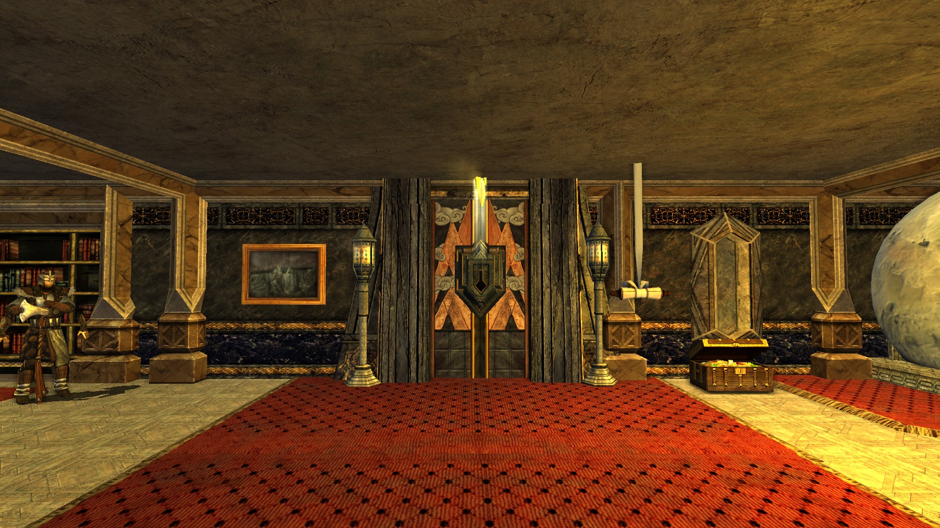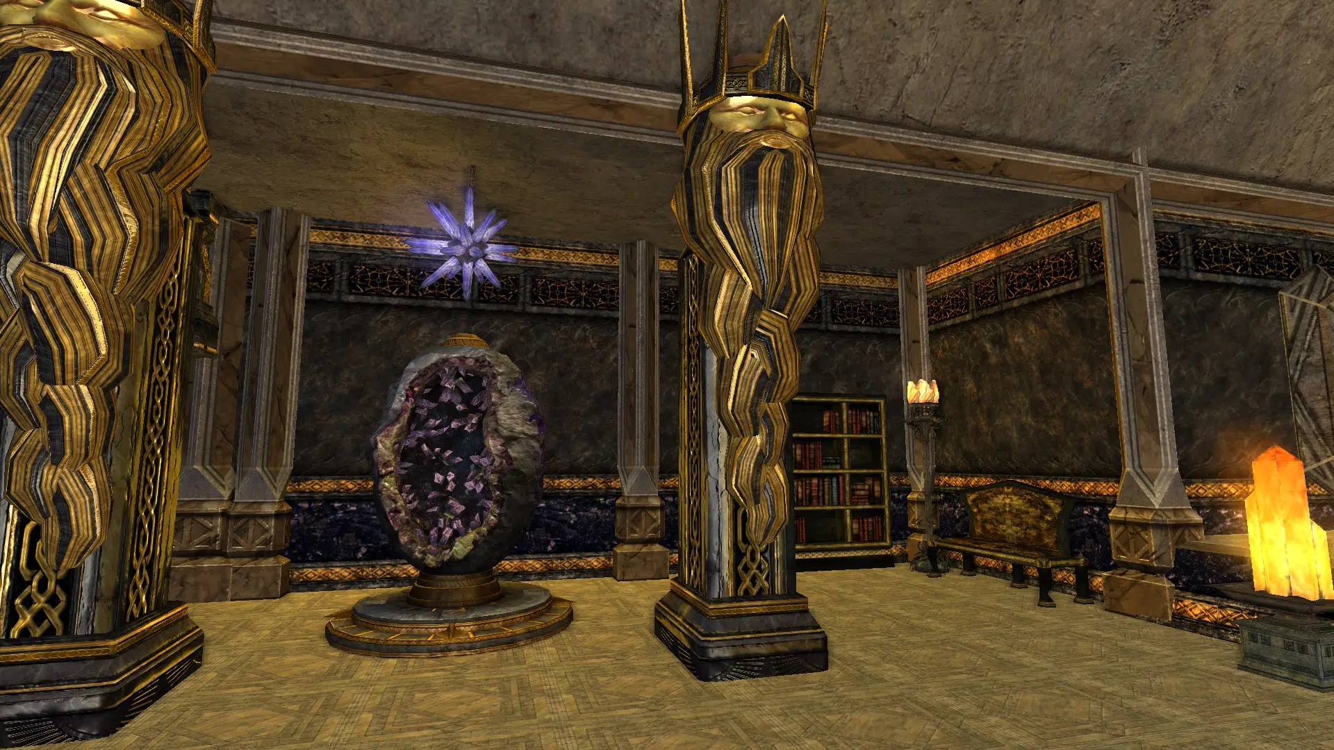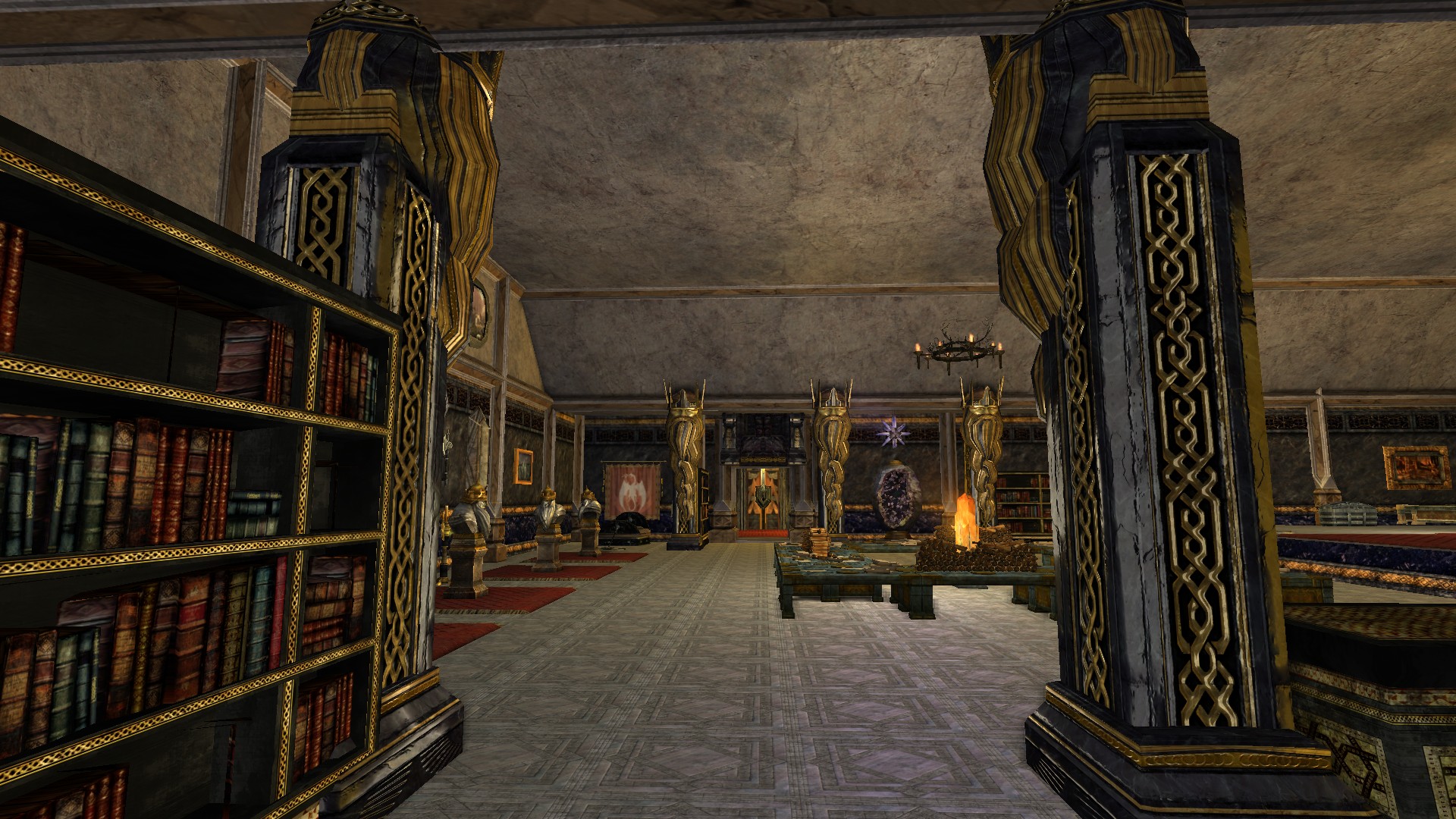 The interior of the house features majestic columns, countless maps and in true dwarf fashion, hidden mechanisms that are tied to riddle scrolls, secret keyholes and rotating statues operated by a lever.