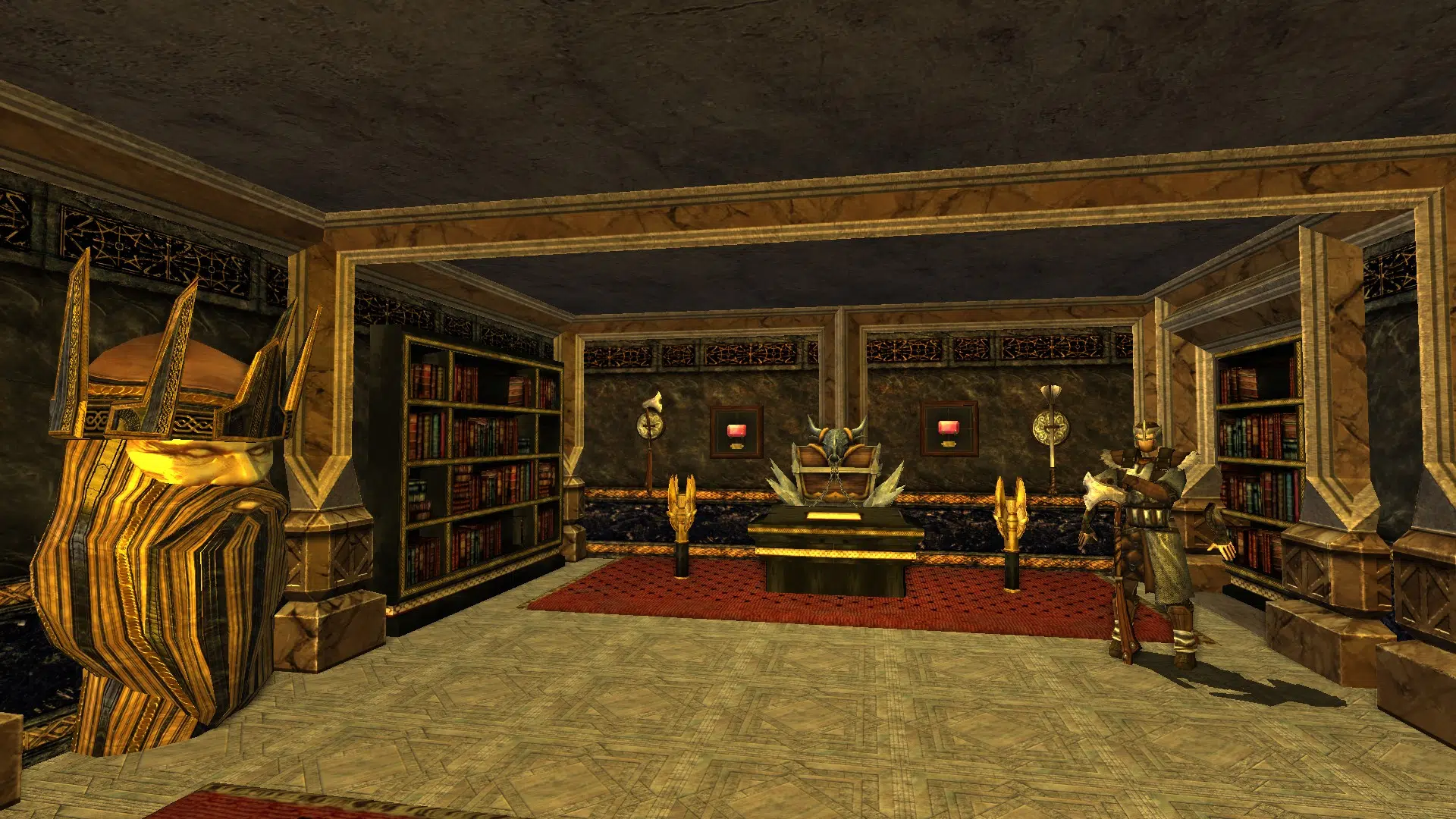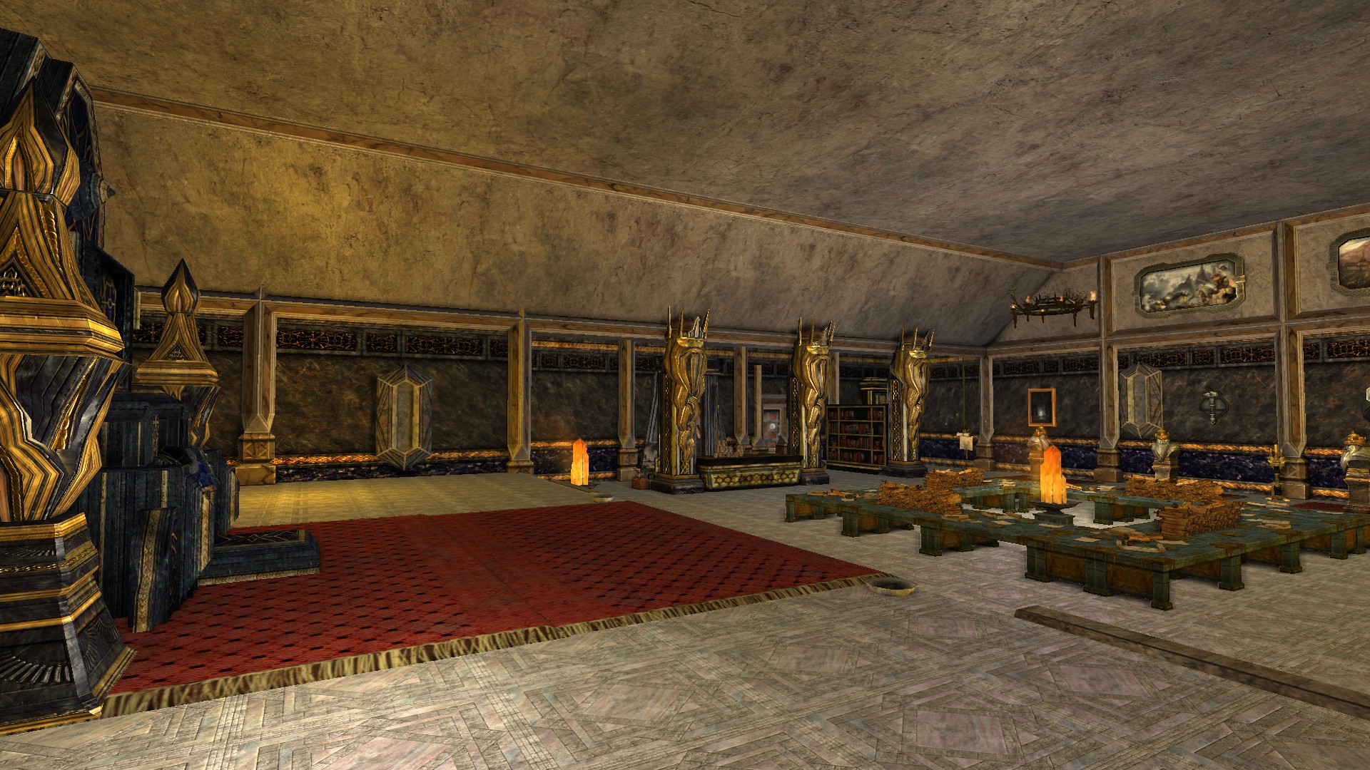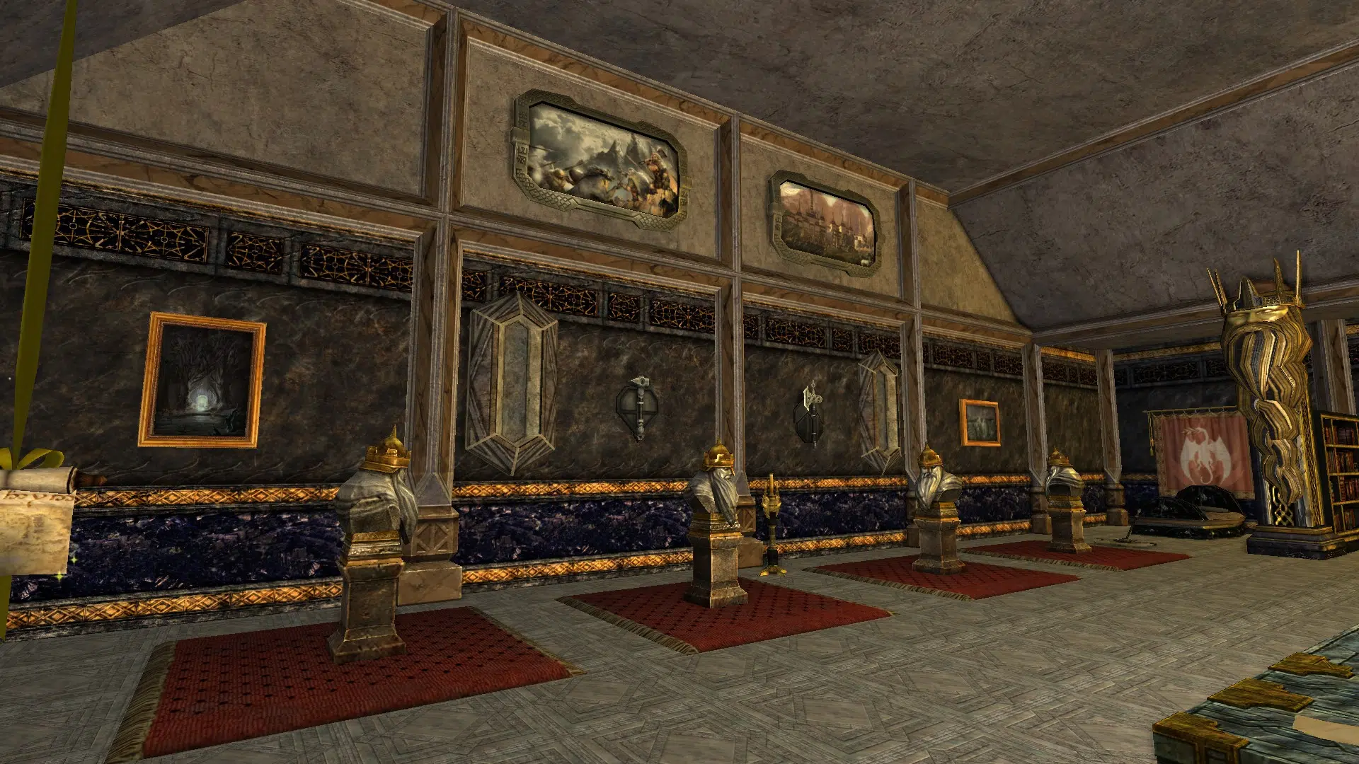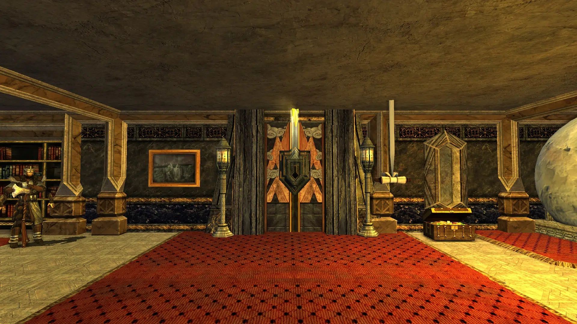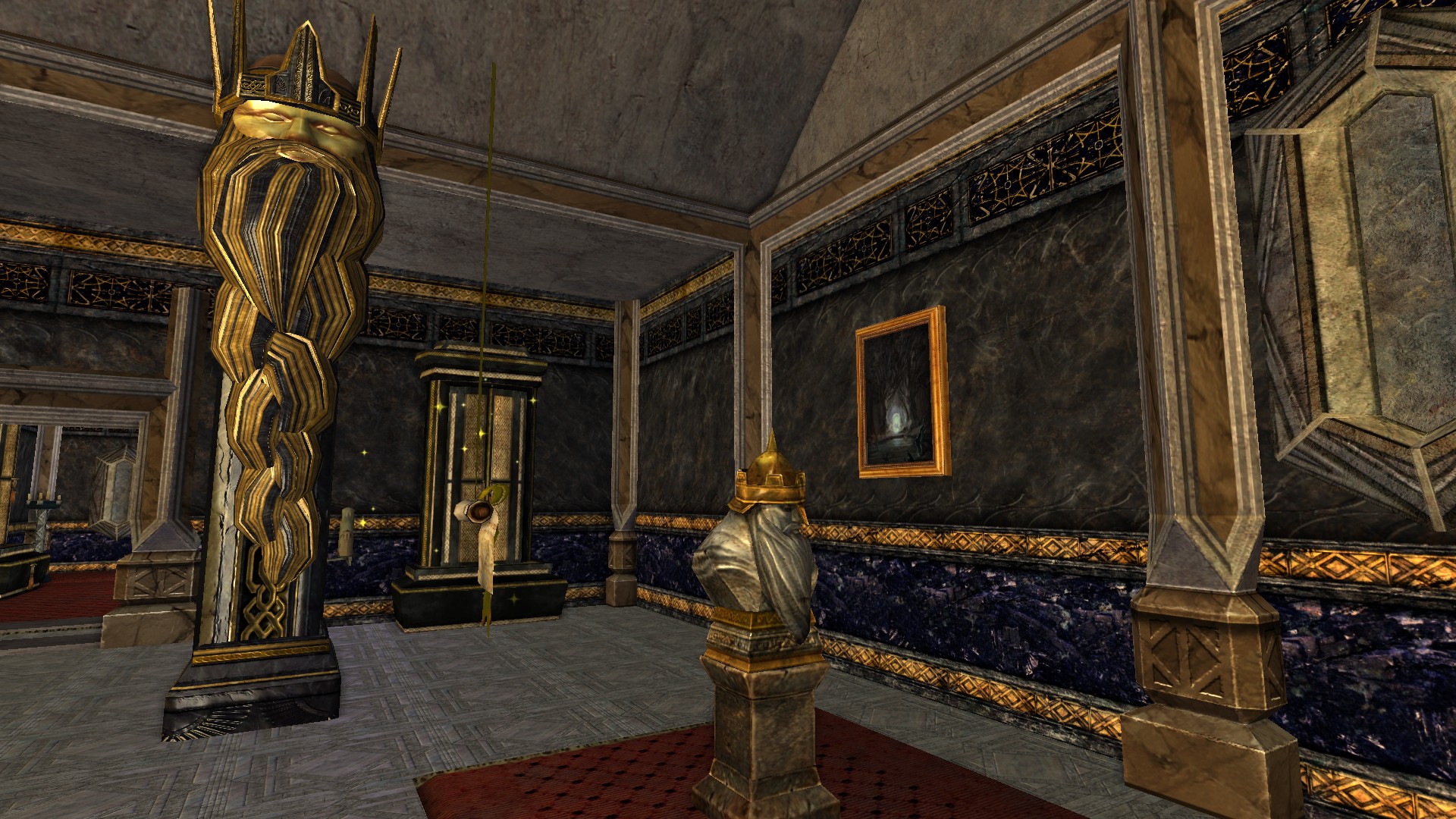 The interior of the house features majestic columns, countless maps and in true dwarf fashion, hidden mechanisms that are tied to riddle scrolls, secret keyholes and rotating statues operated by a lever.