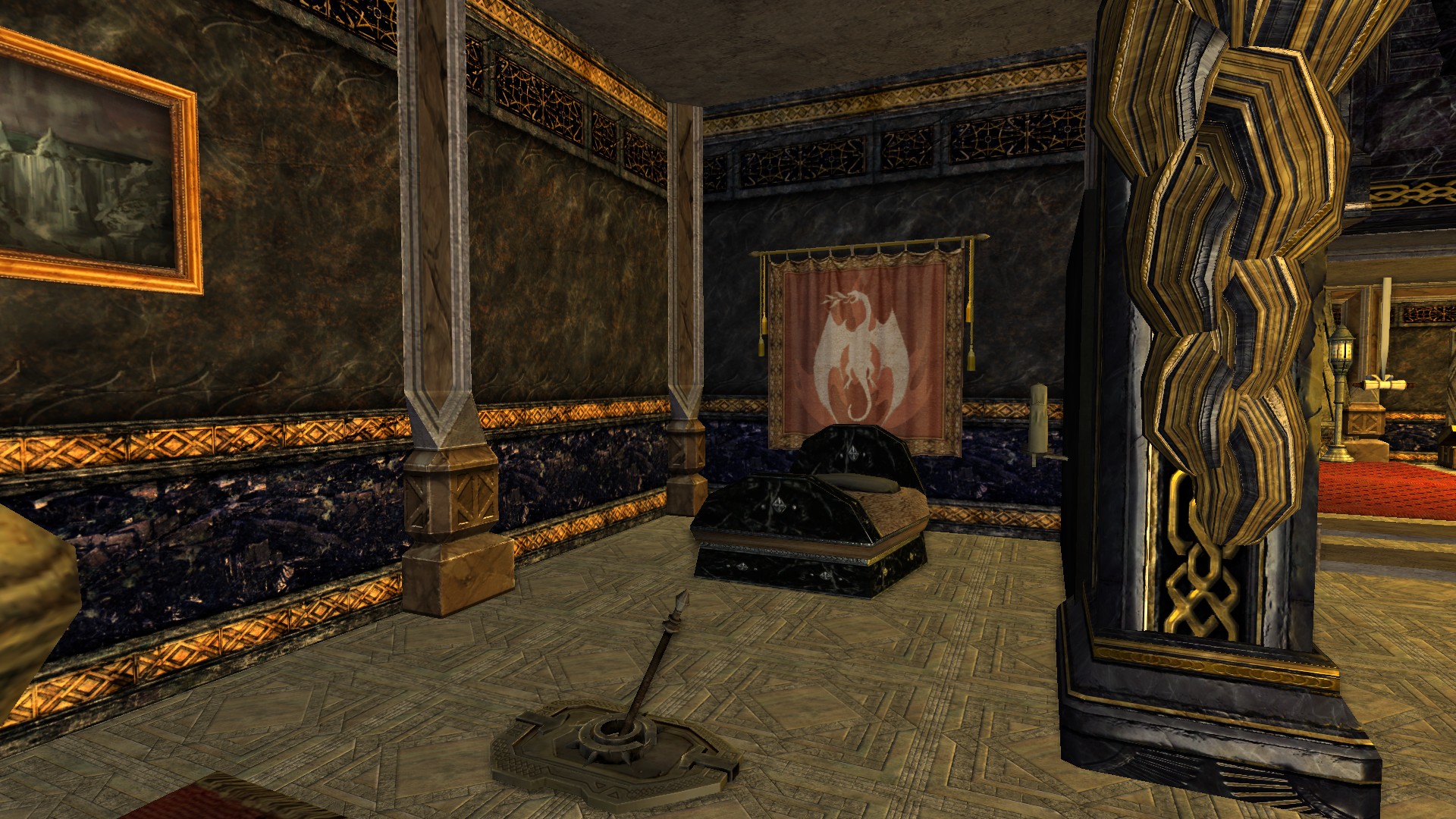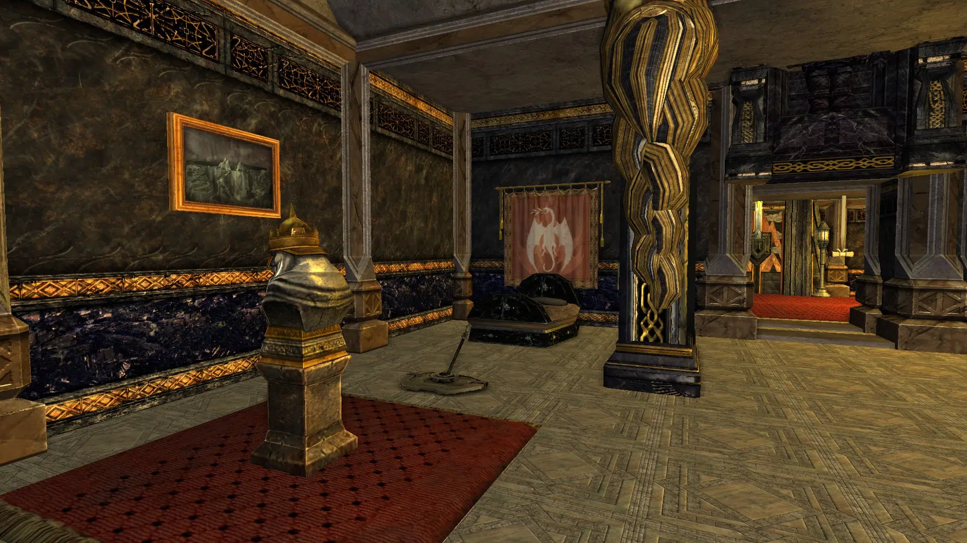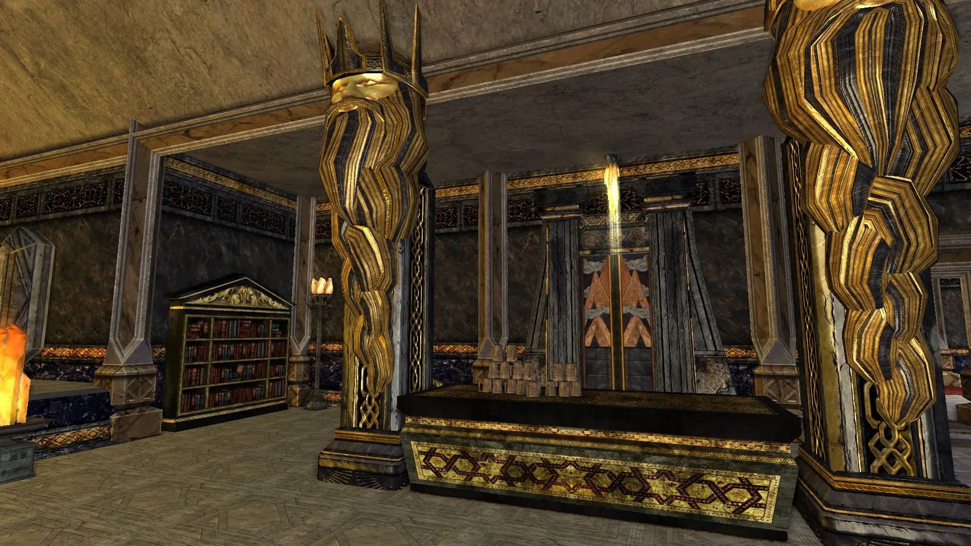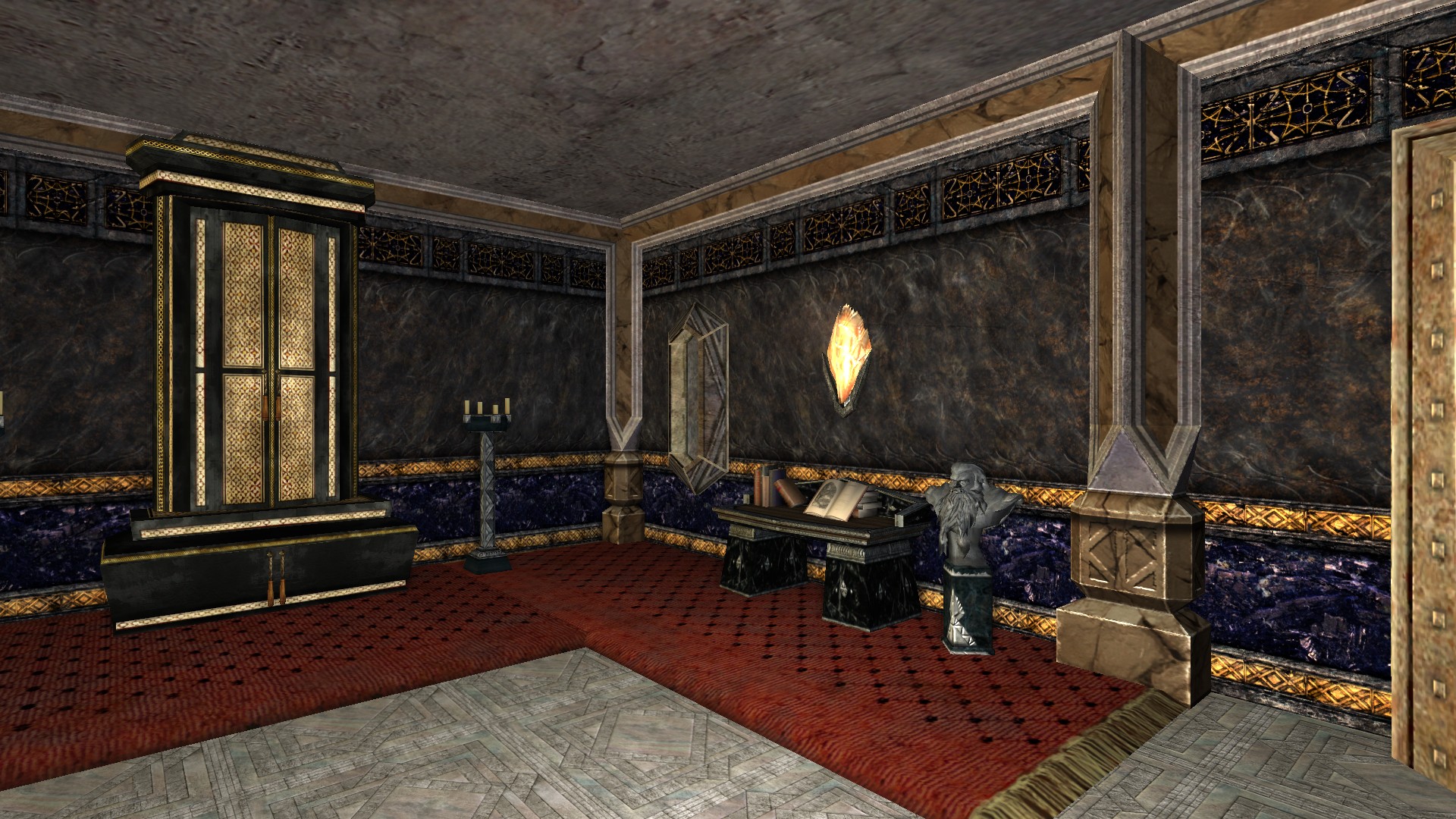 The interior of the house features majestic columns, countless maps and in true dwarf fashion, hidden mechanisms that are tied to riddle scrolls, secret keyholes and rotating statues operated by a lever.