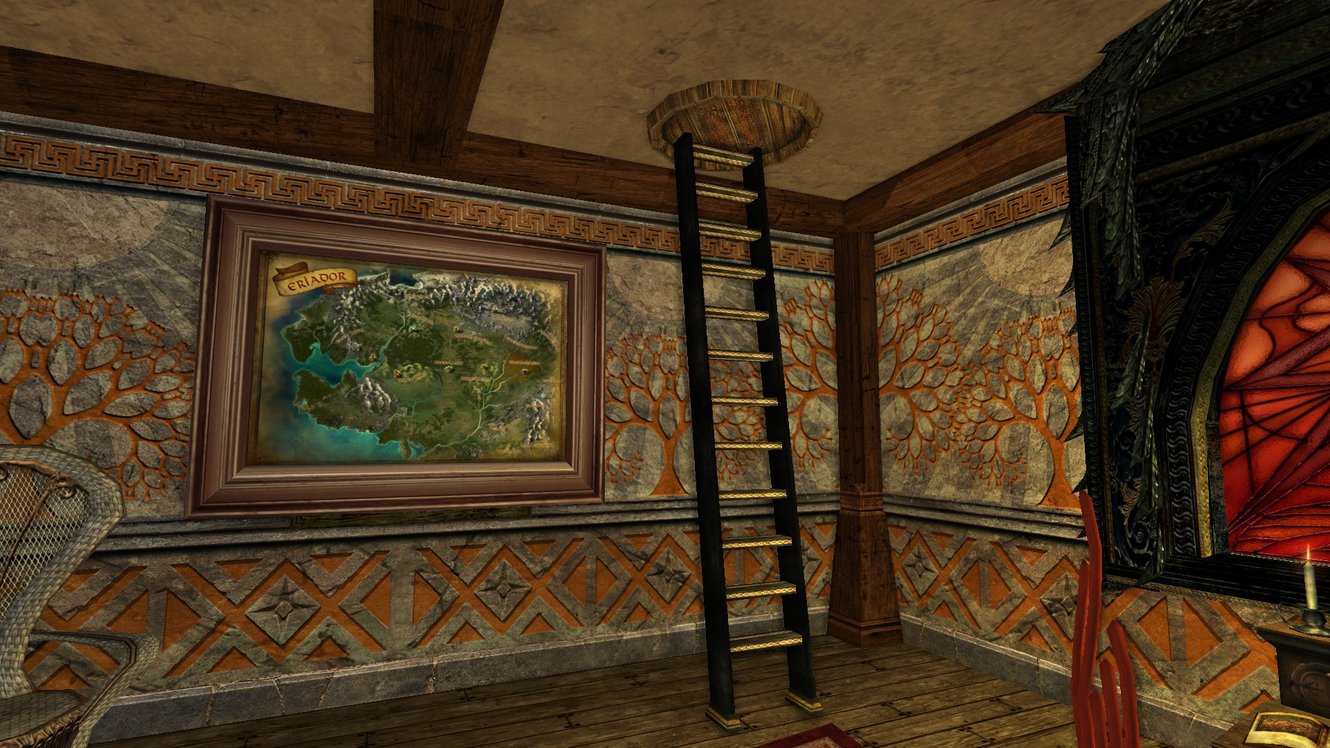 I actually had to go see this house twice, since I made the mistake of trying the attic door before I was done exploring the rest of the house. Having never encountered the Empty Apple Barrel decoration before, my unsuspecting lvl 5 character inadvertently got a free tour of Northern Mirkwood a whole 110 levels early. Yeah, that was fun… 🙂