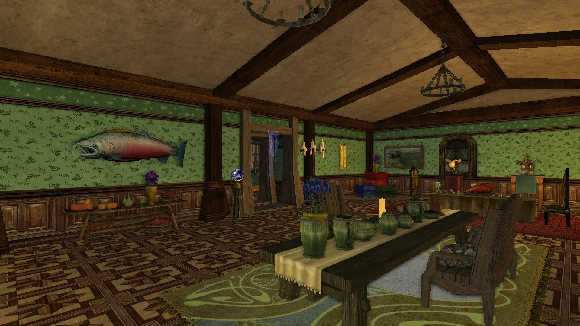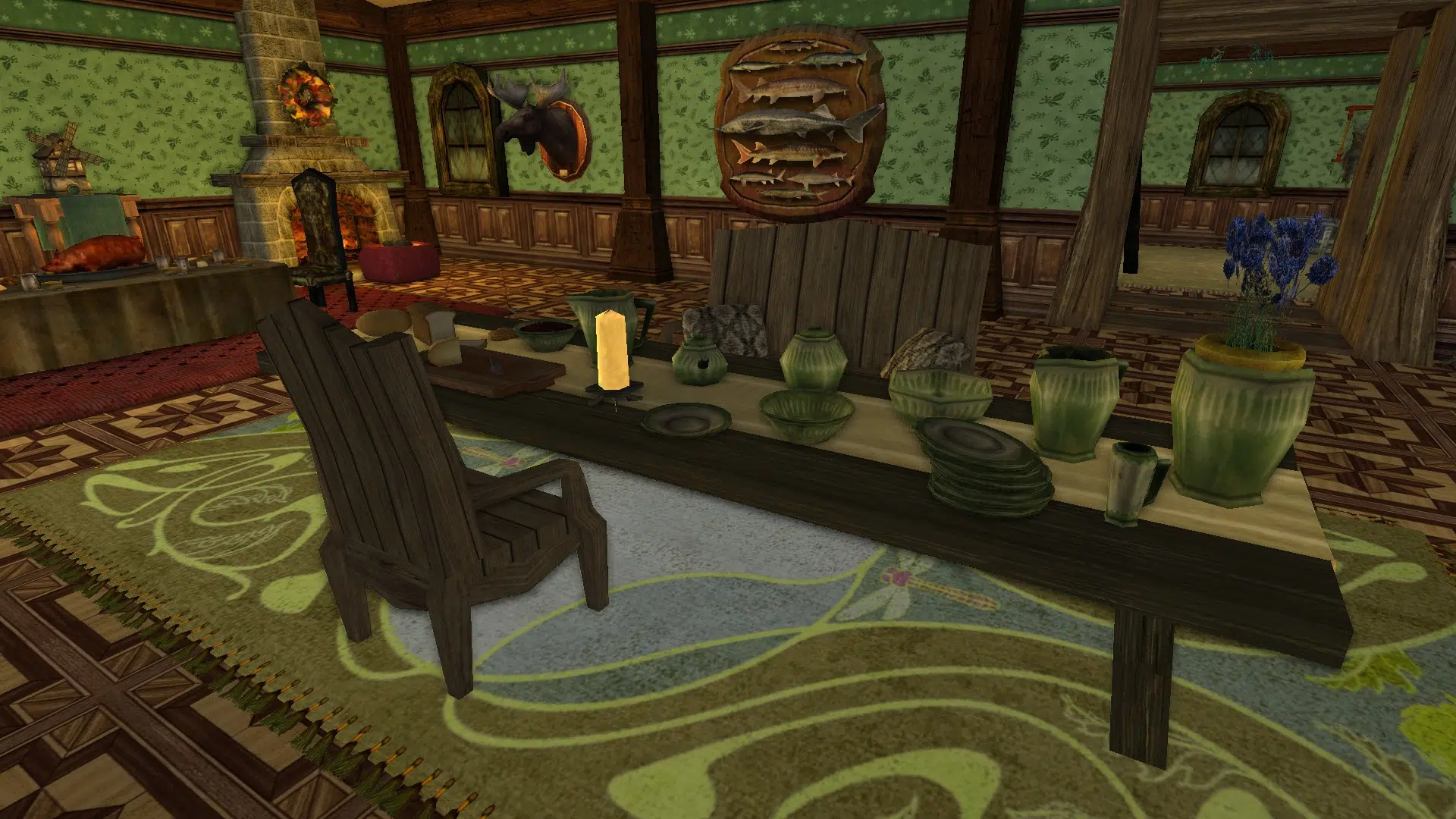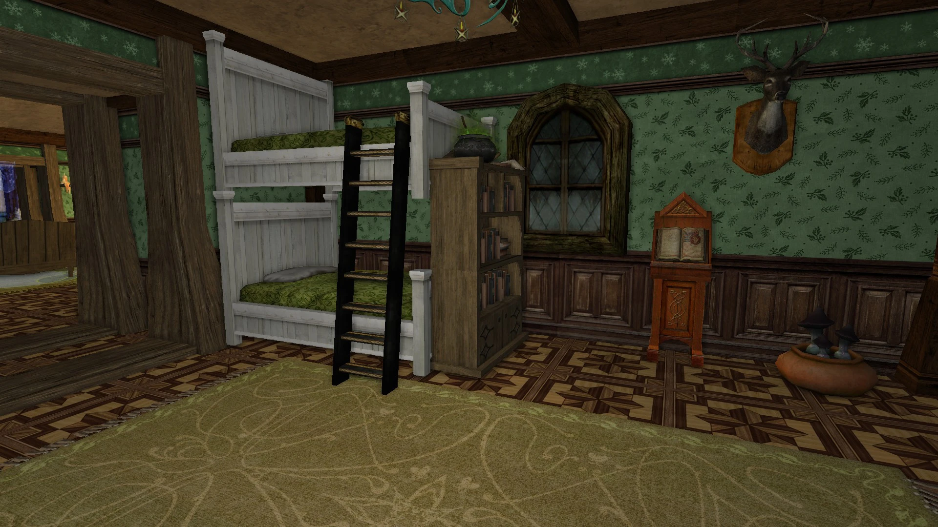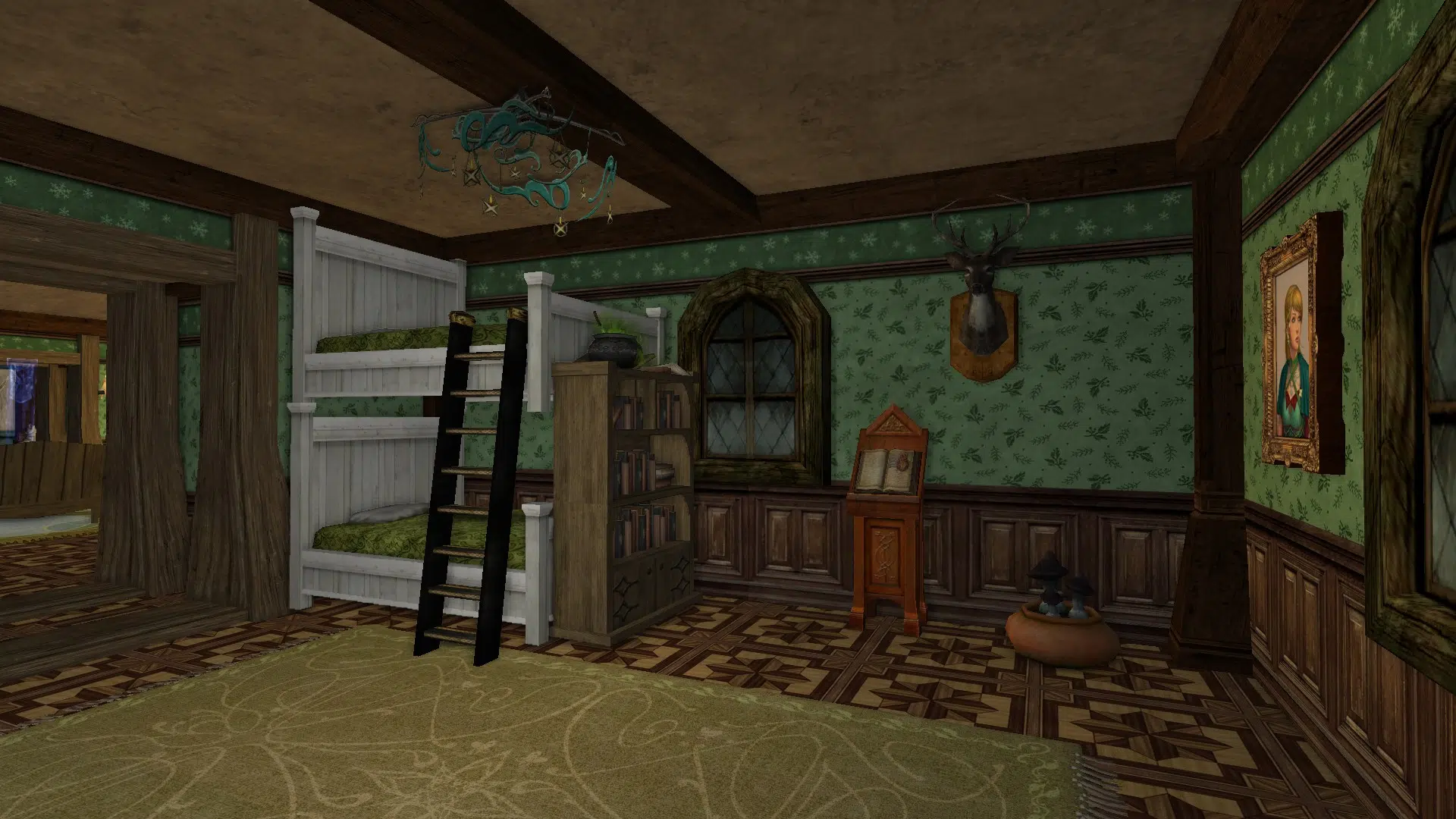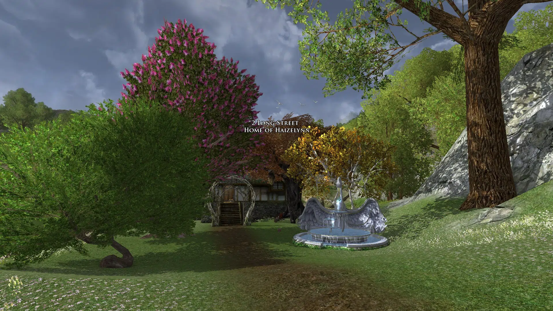 "Welcome to my cozy house! It's fully decorated in a mix of human, elven and hobbit furniture, always changing. It has a living room with two tables, a study corner, a bedroom with two beds and an adventure room with trophies and treasures. I struggled with the yard because I don't like the hooks of my address, but I may move to the house at the end of Garden Street in a while, if it's available, even if it means I have to decorate the interior of the house so that it looks exactly the same as my current house. Hope you like it anyways!"