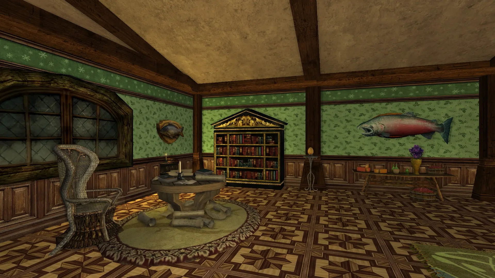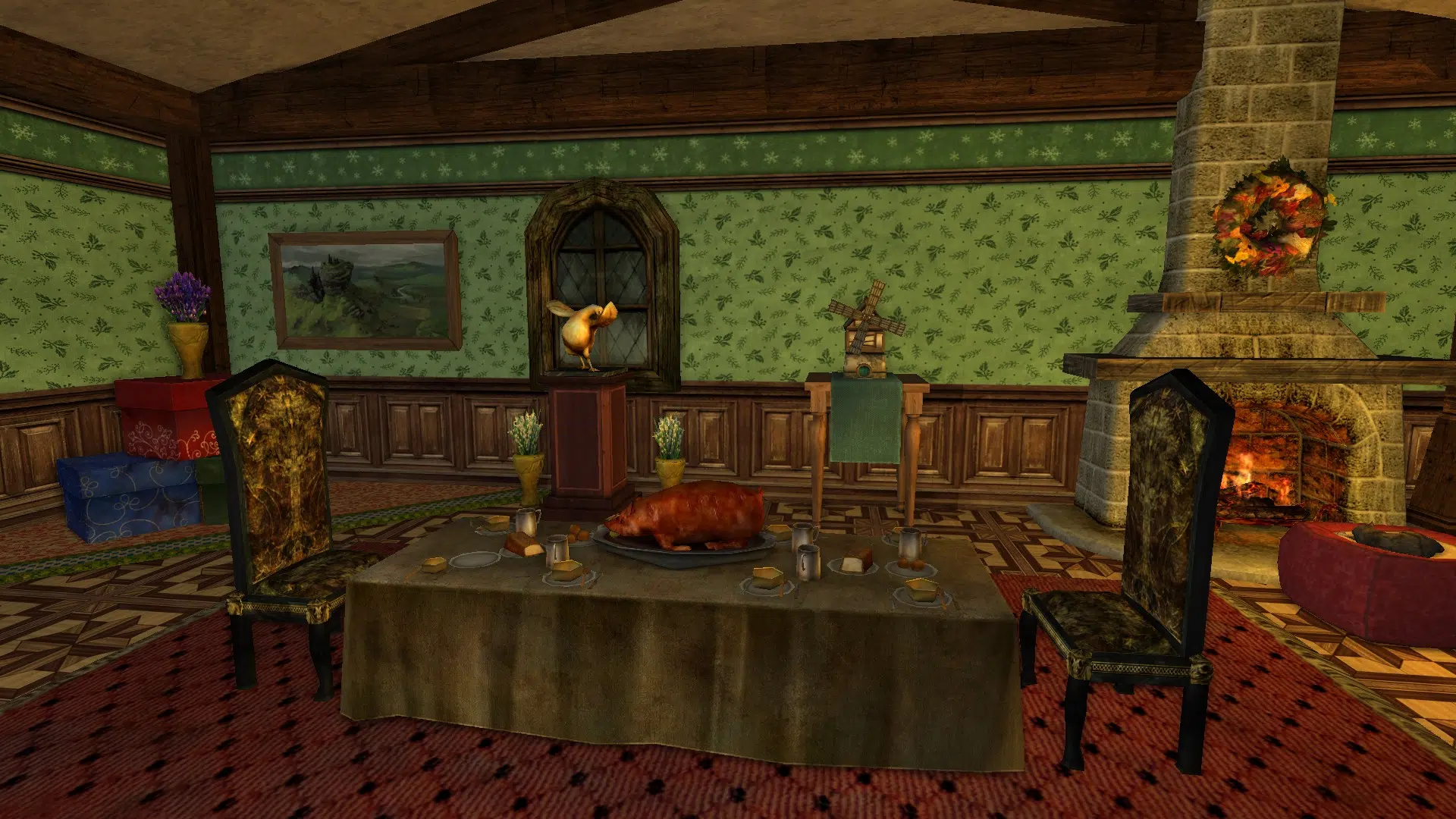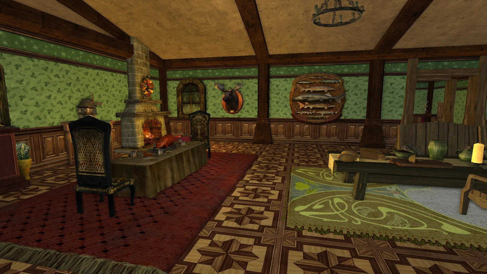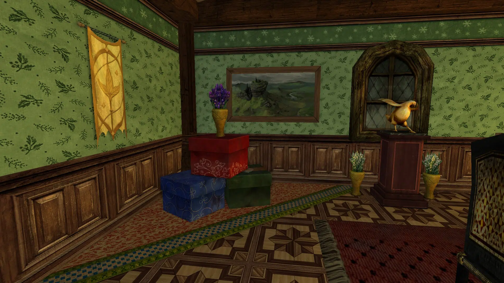 "Welcome to my cozy house! It's fully decorated in a mix of human, elven and hobbit furniture, always changing. It has a living room with two tables, a study corner, a bedroom with two beds and an adventure room with trophies and treasures. I struggled with the yard because I don't like the hooks of my address, but I may move to the house at the end of Garden Street in a while, if it's available, even if it means I have to decorate the interior of the house so that it looks exactly the same as my current house. Hope you like it anyways!"