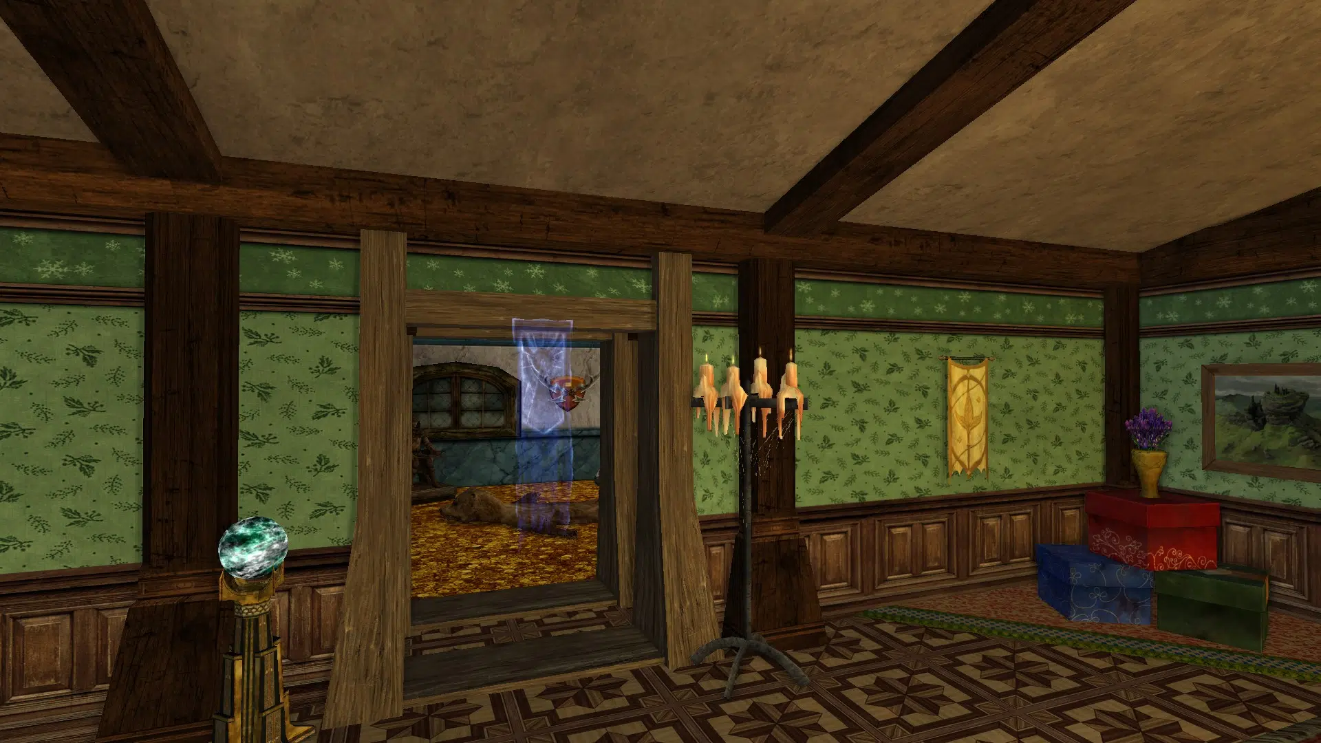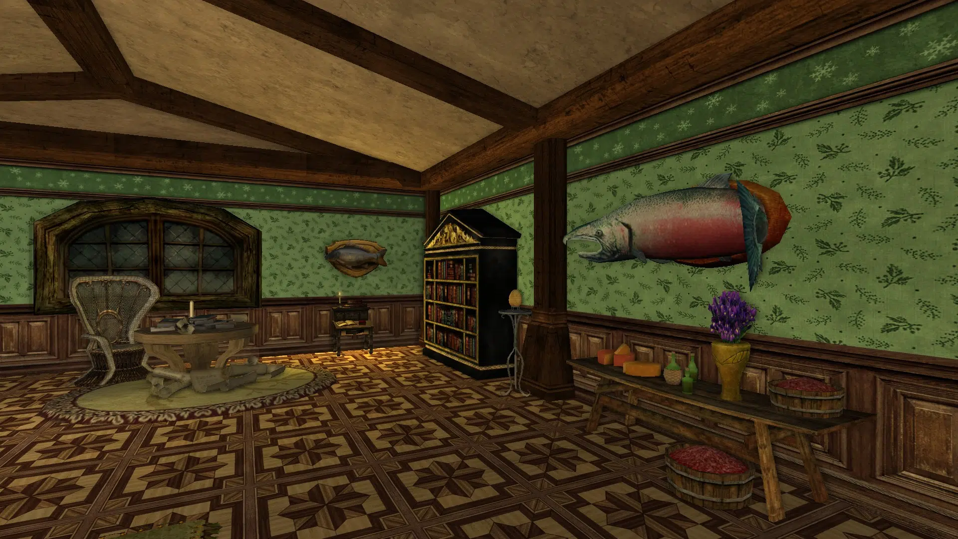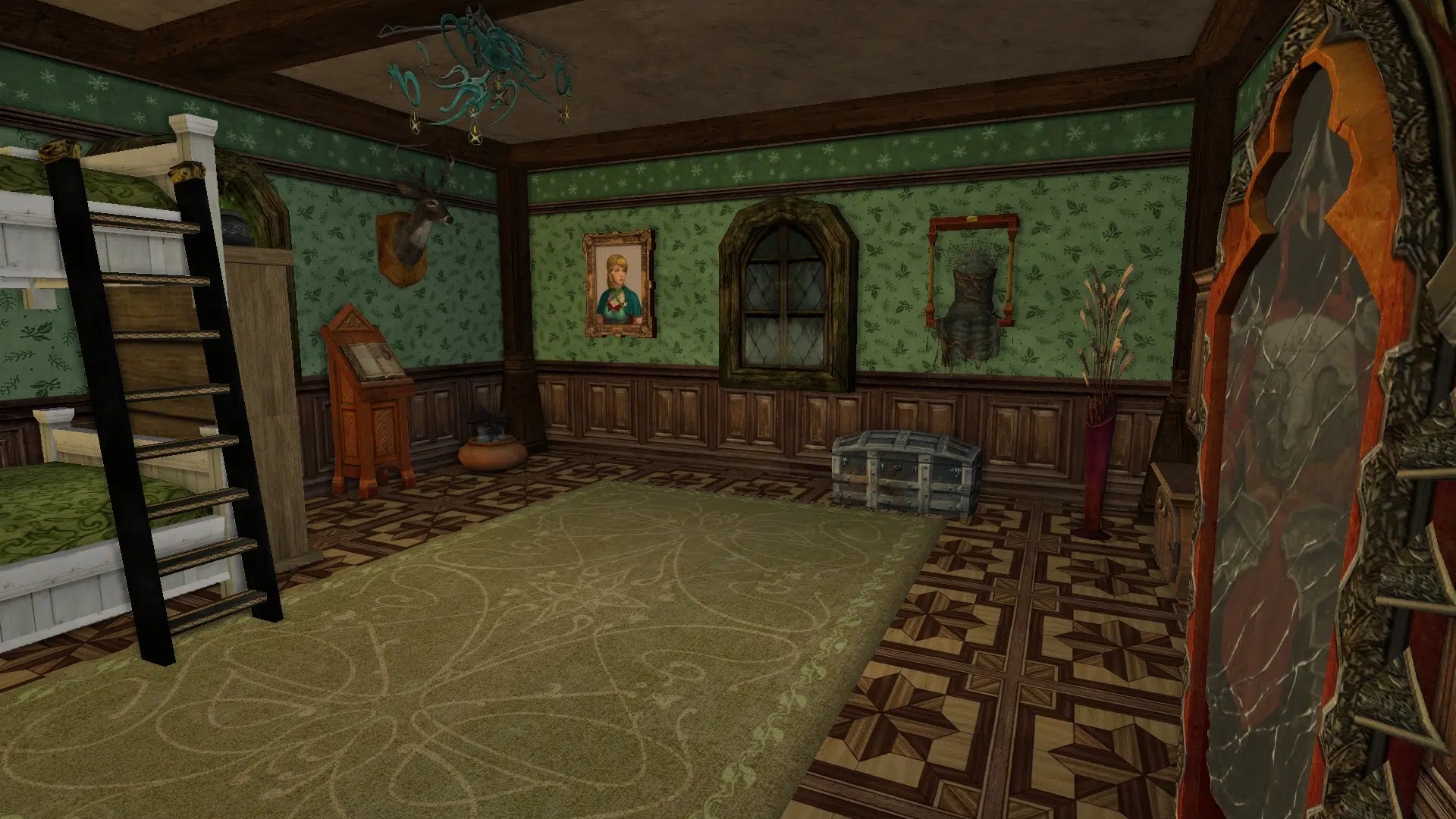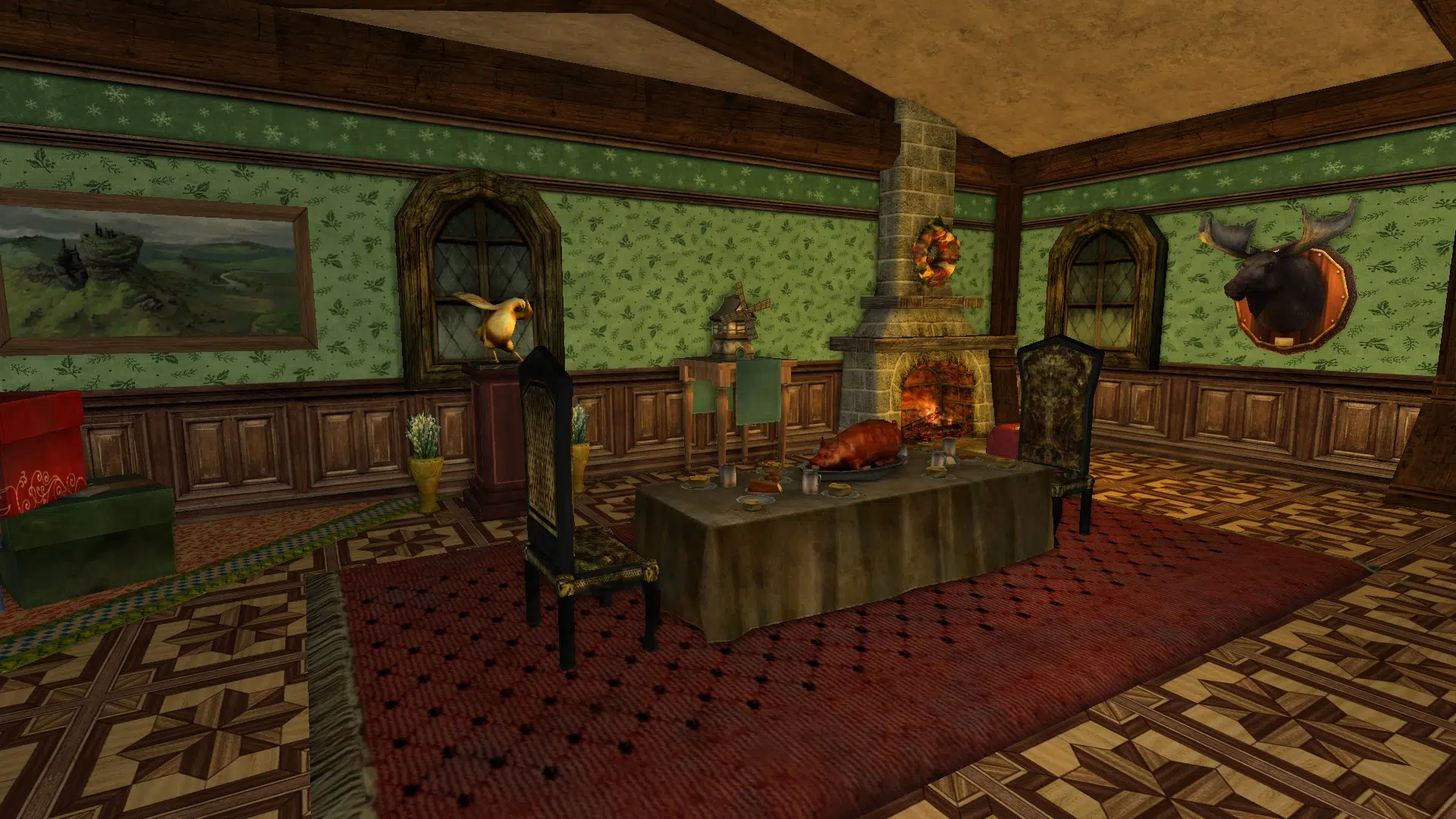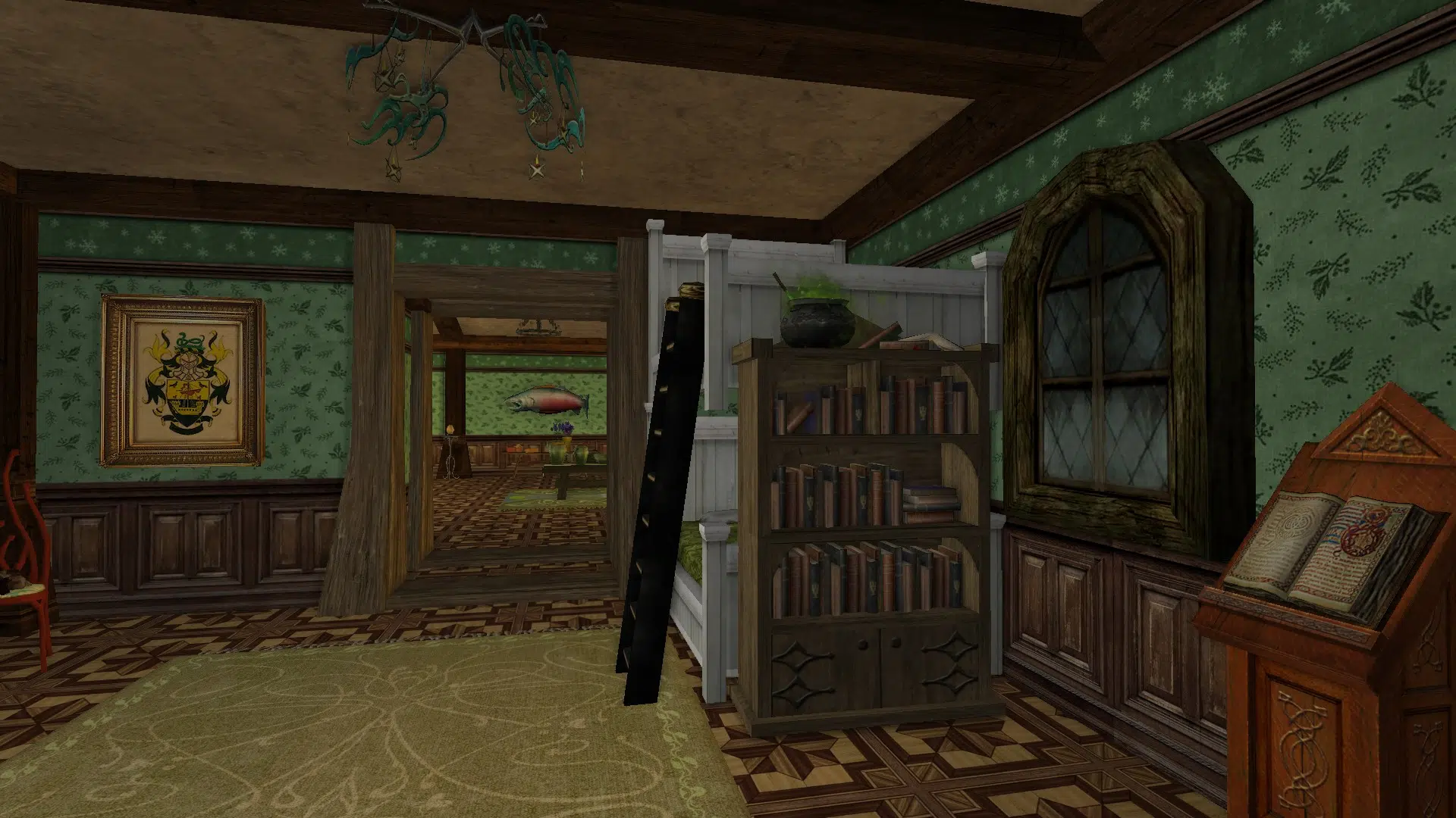 "Welcome to my cozy house! It's fully decorated in a mix of human, elven and hobbit furniture, always changing. It has a living room with two tables, a study corner, a bedroom with two beds and an adventure room with trophies and treasures. I struggled with the yard because I don't like the hooks of my address, but I may move to the house at the end of Garden Street in a while, if it's available, even if it means I have to decorate the interior of the house so that it looks exactly the same as my current house. Hope you like it anyways!"
