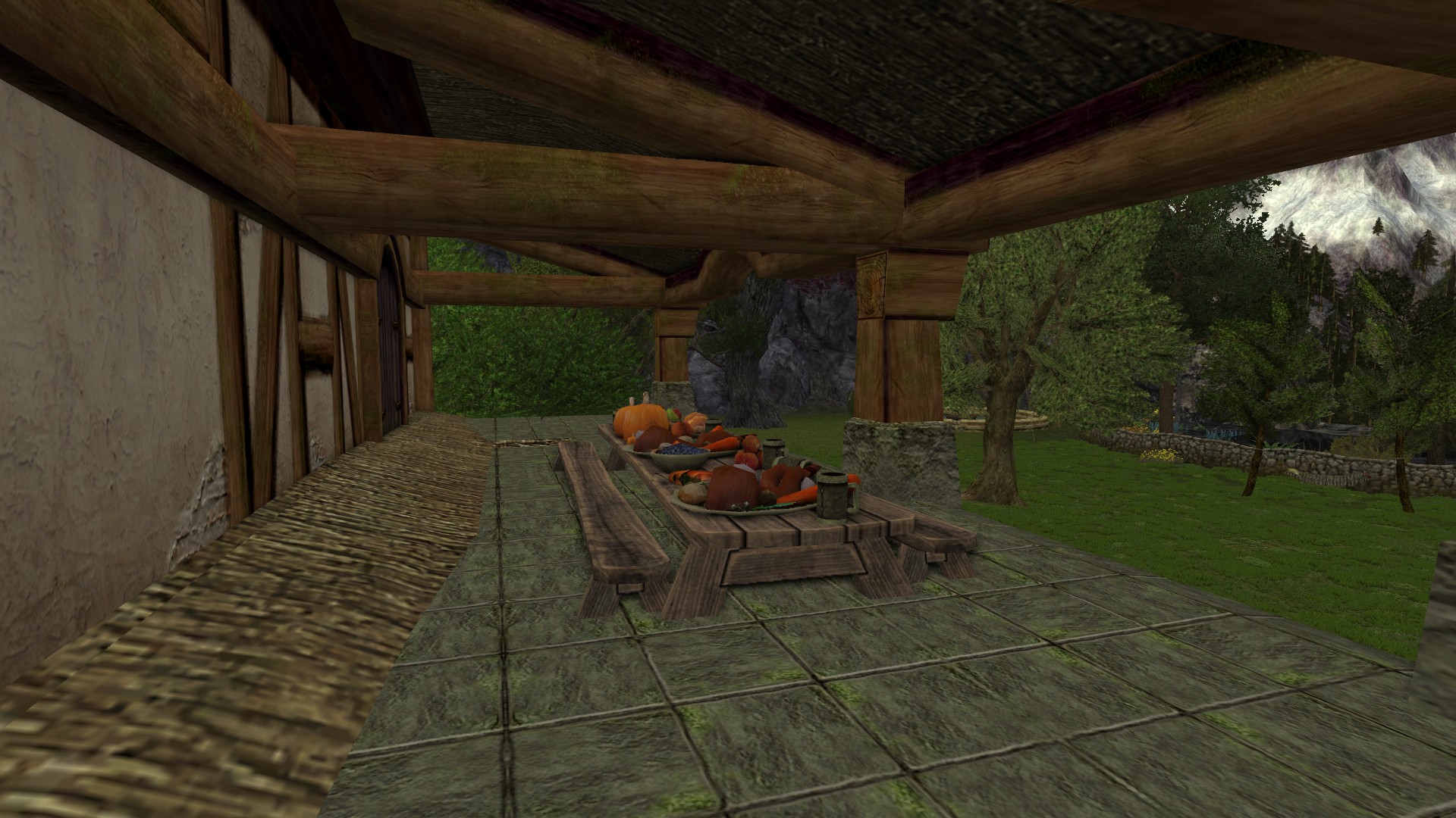 Tom and Goldberry invite you to be thier guests. They've served up a picnic on the porch for you to enjoy. If you spot Angry Old Man Willow: don't be too alarmed. His arborist has convinced him to stop snacking on passersby. He mostly contents himself by laying in wait to pull pranks on Tom. One of their young chicken friends has gone missing. If you happen to see her, please point her in the direction of the coop. They look forward to your visit and hope you enjoy your stay.