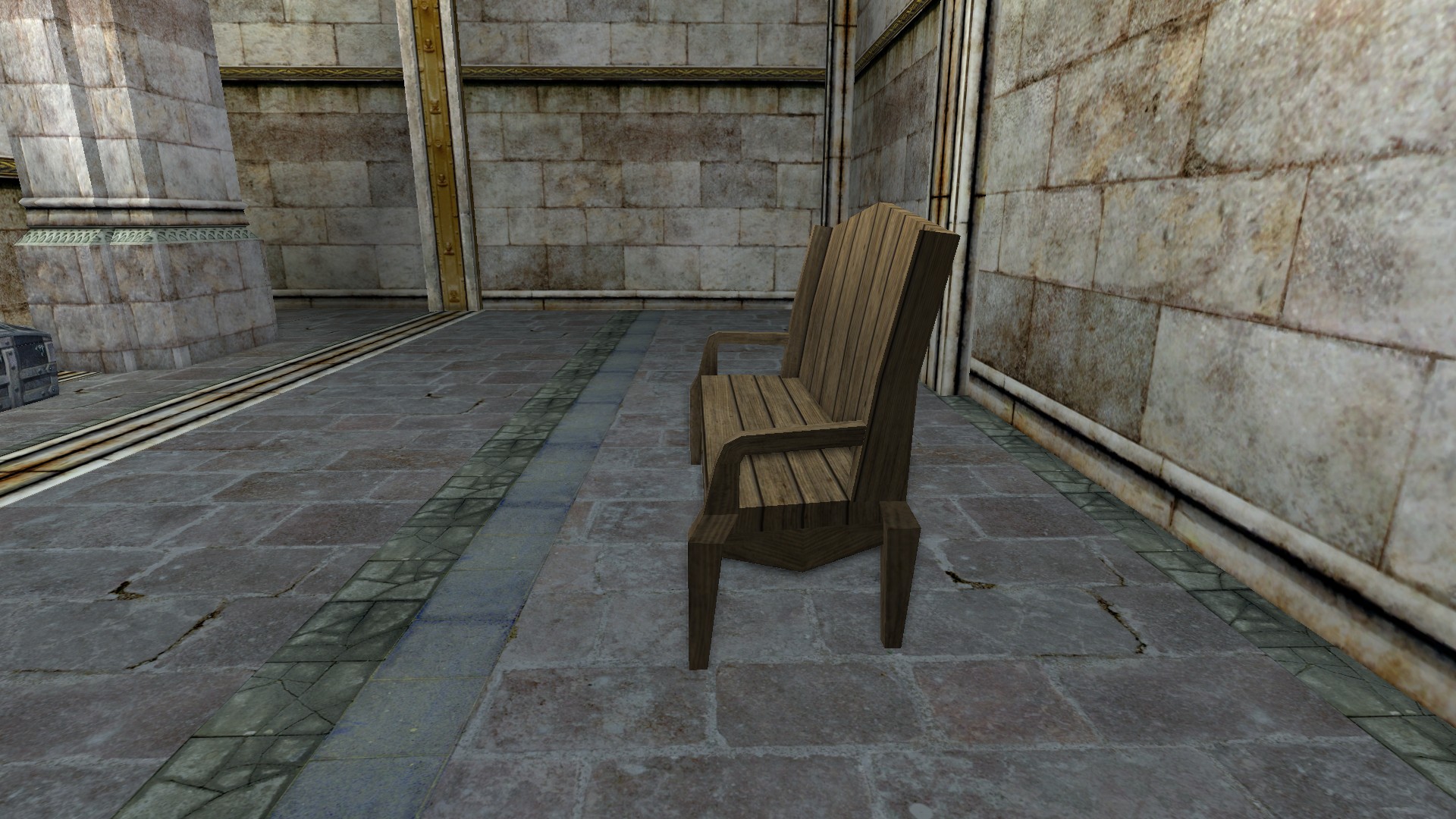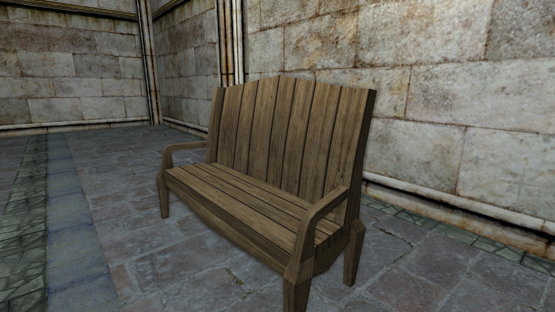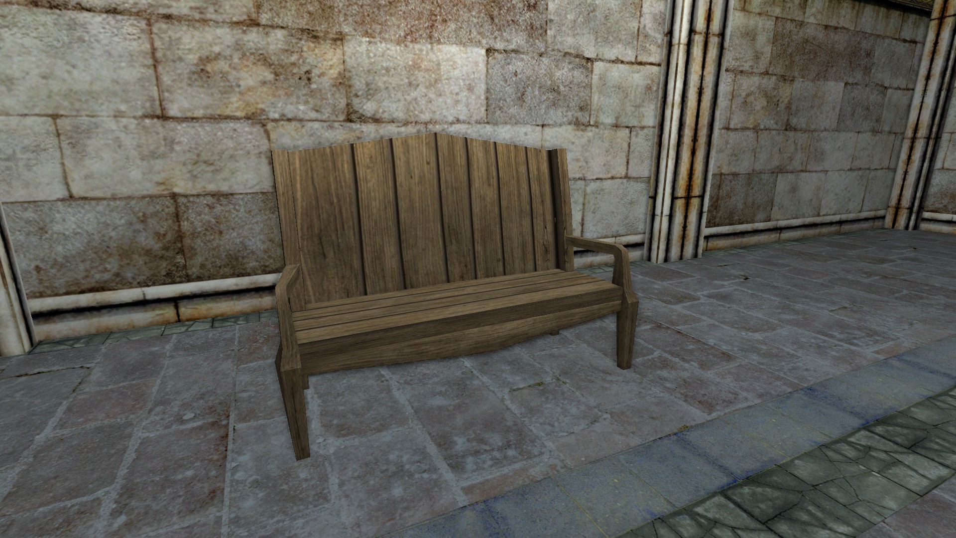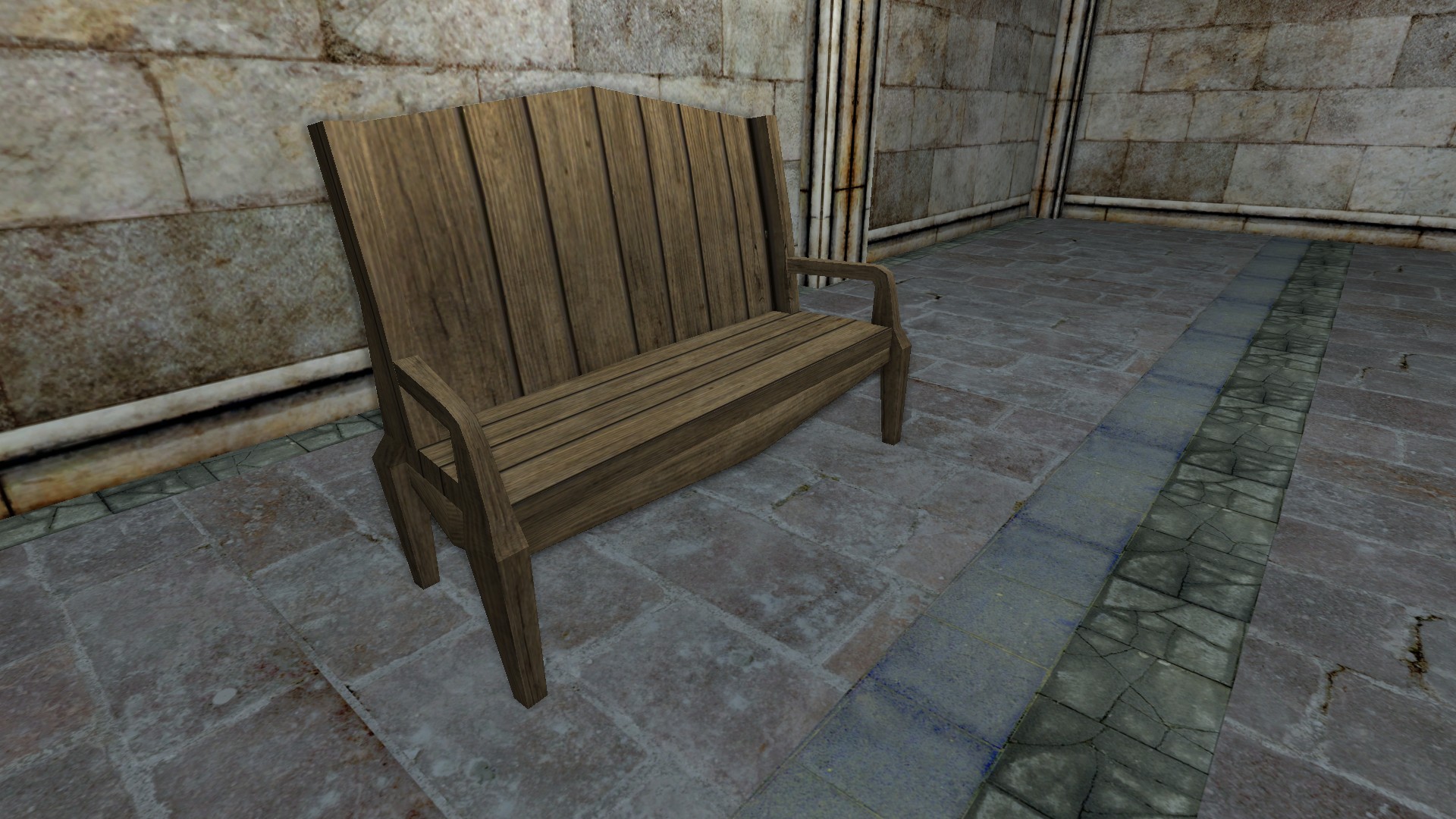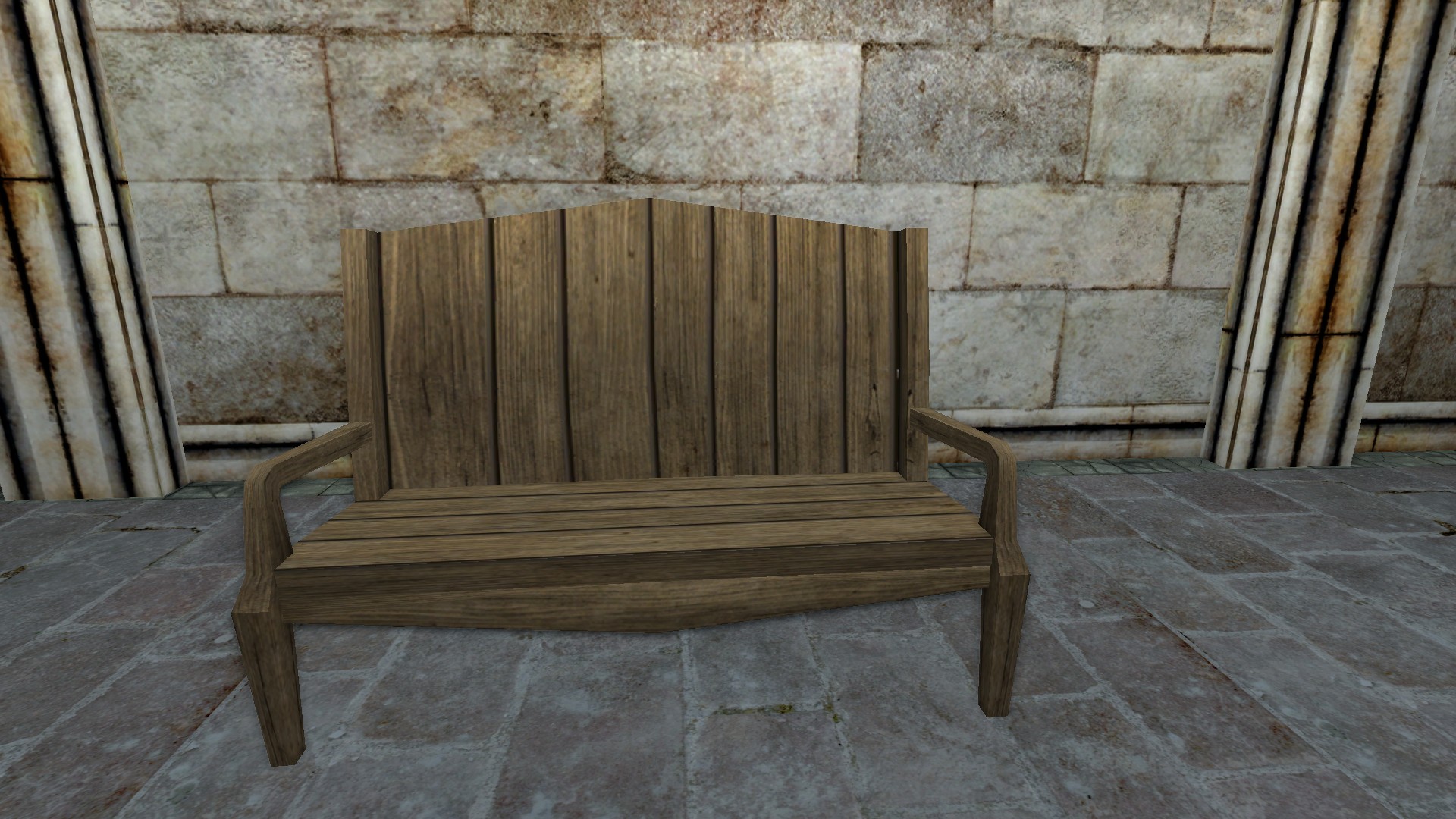 "A basic wooden bench."