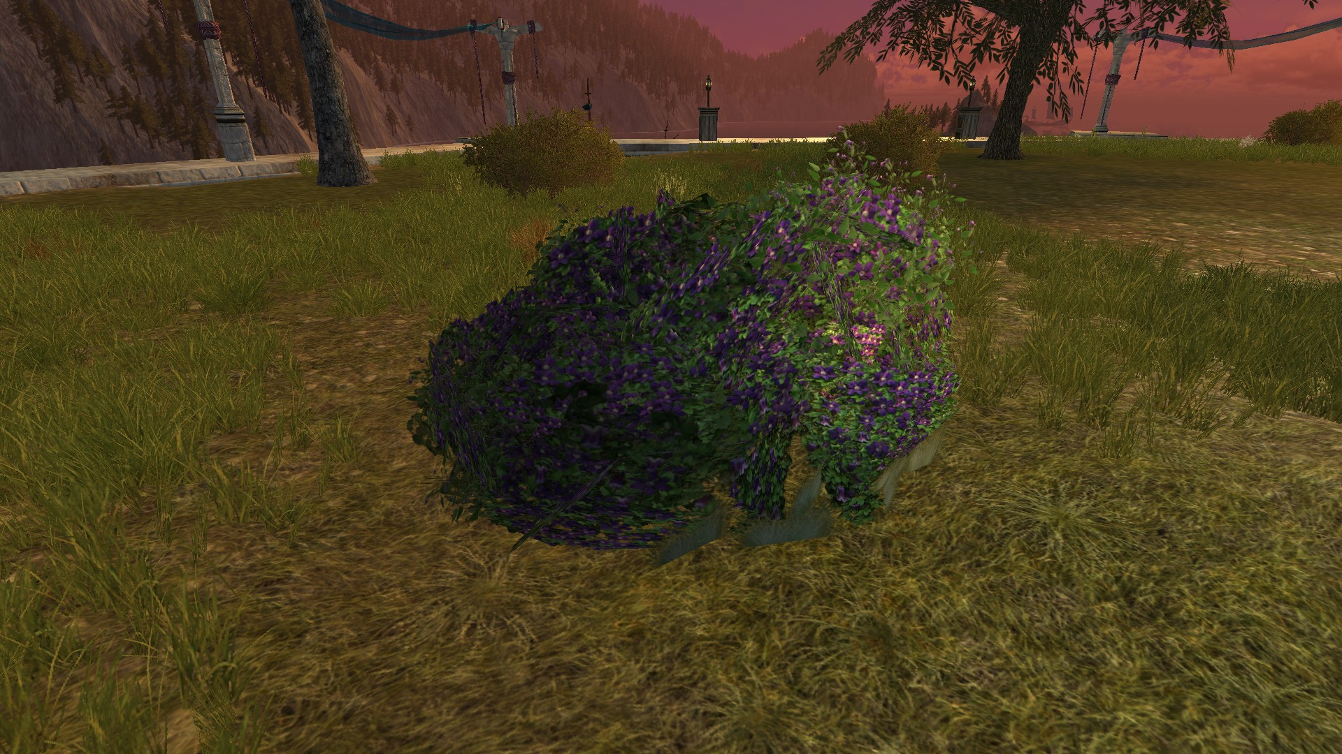 "A short bush with bright, violet flowers."