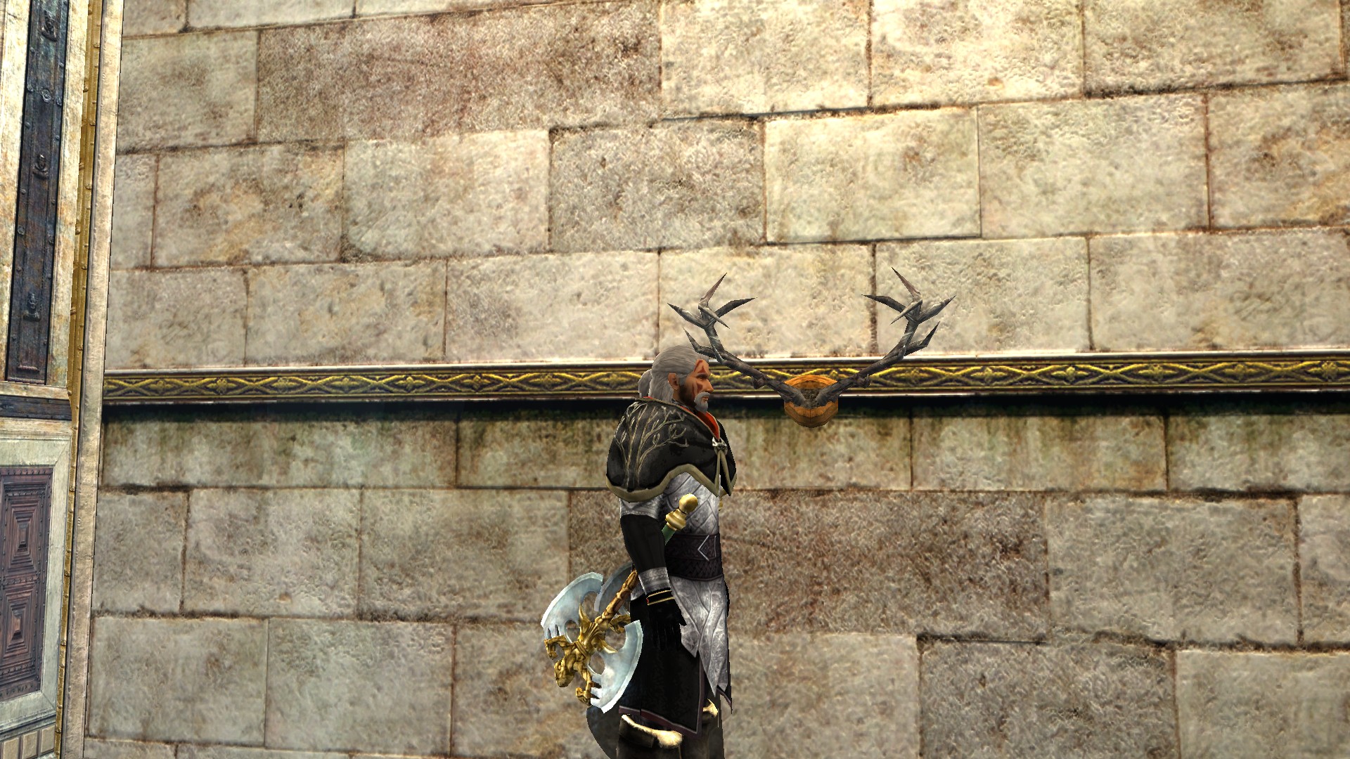 "A mounted pair of antlers from Rohan."