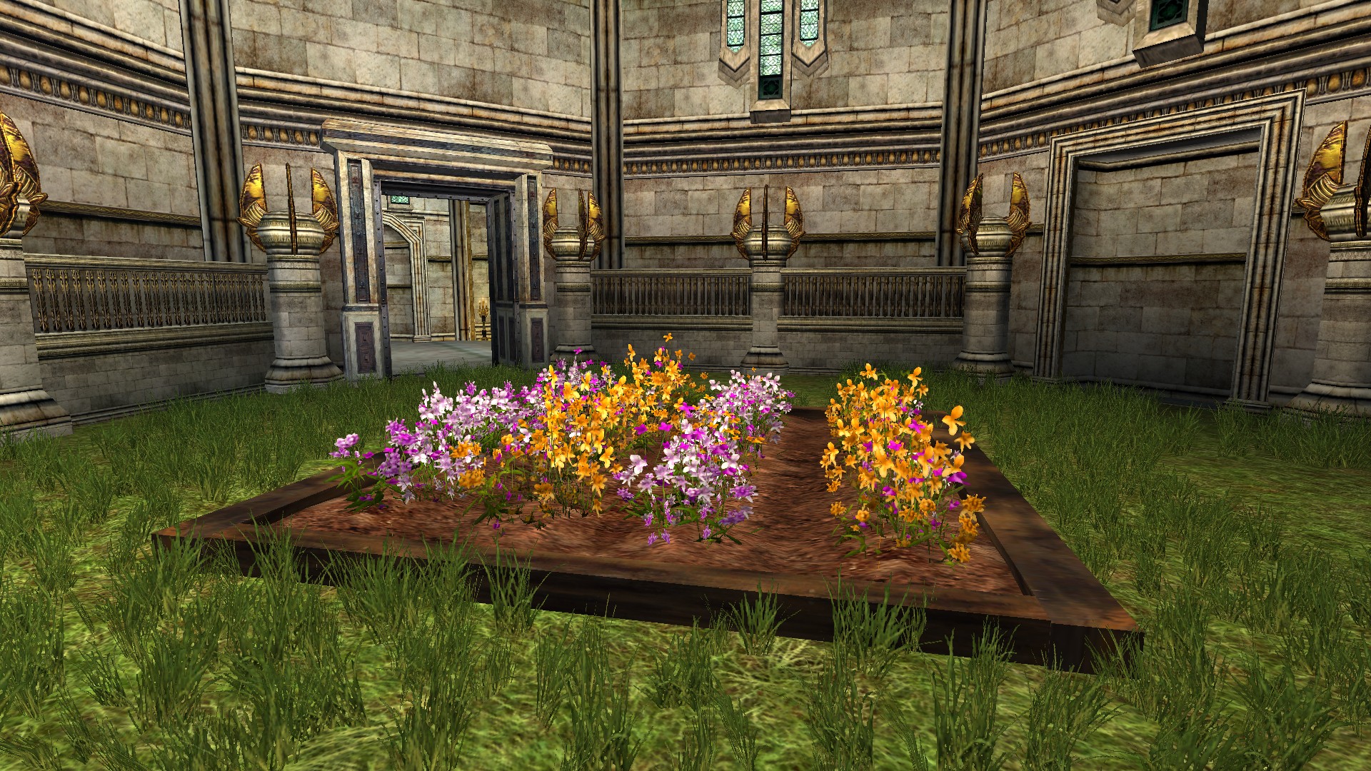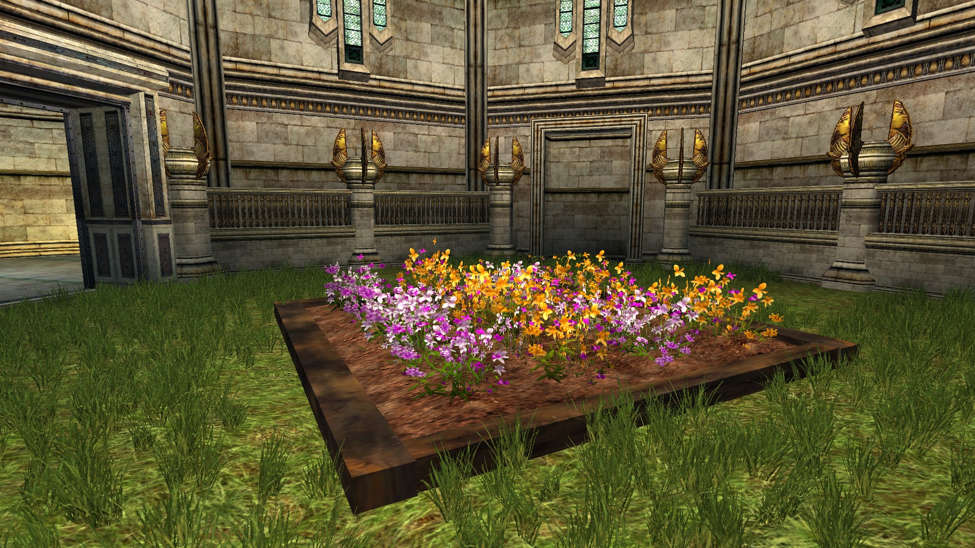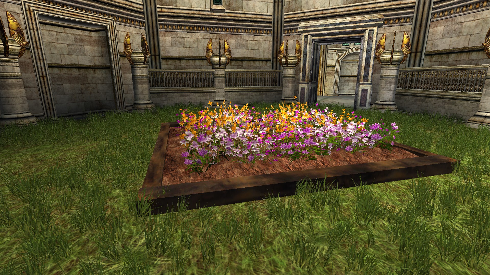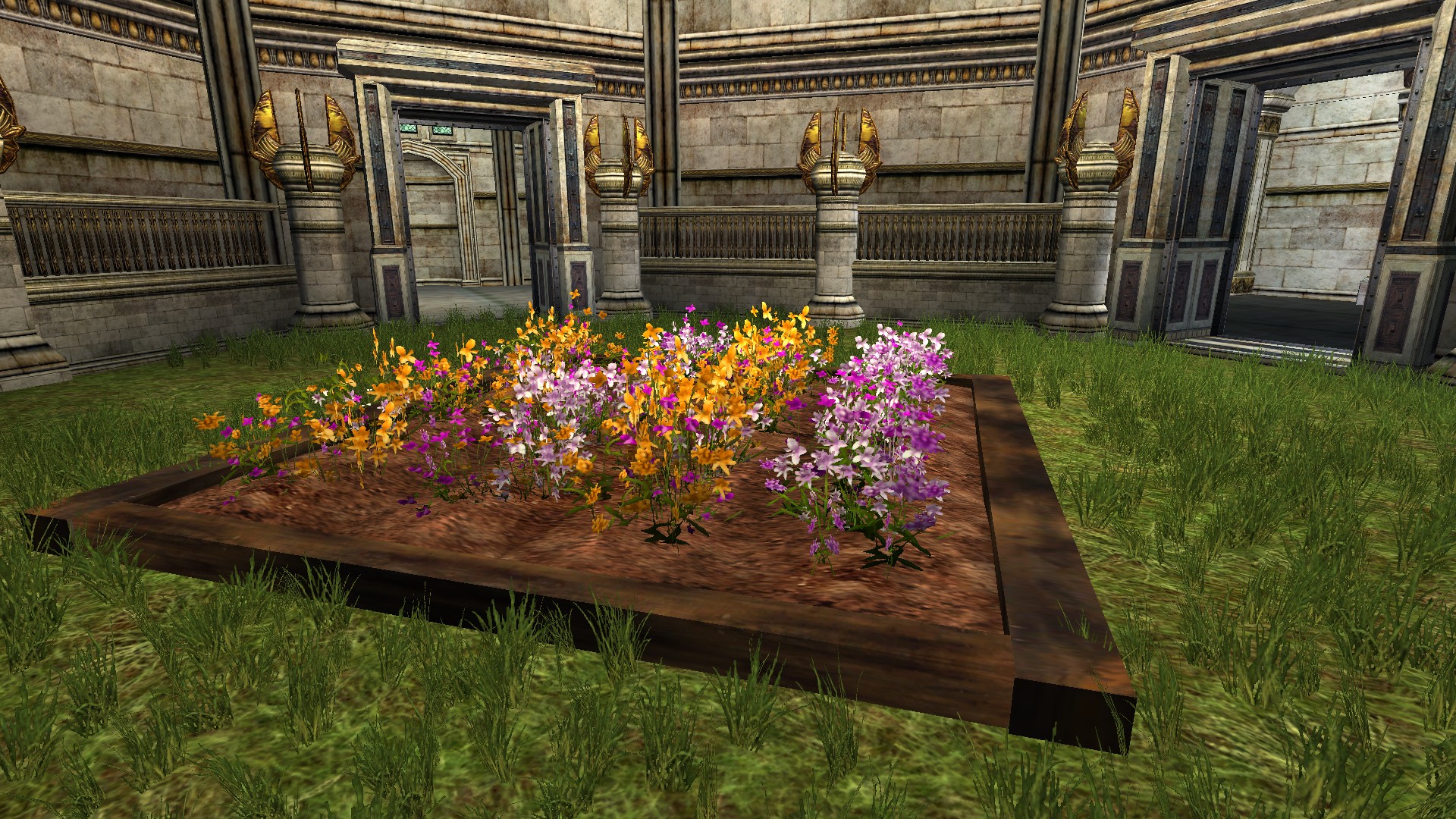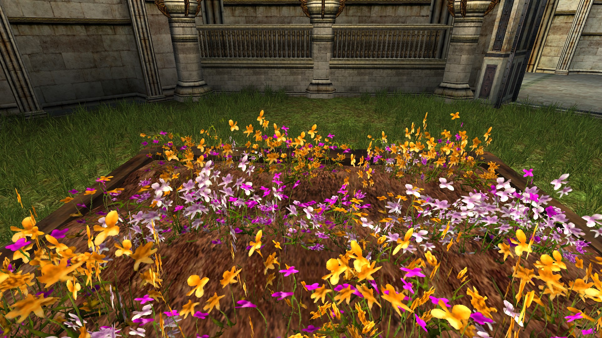"A large garden bed filled with flowers."