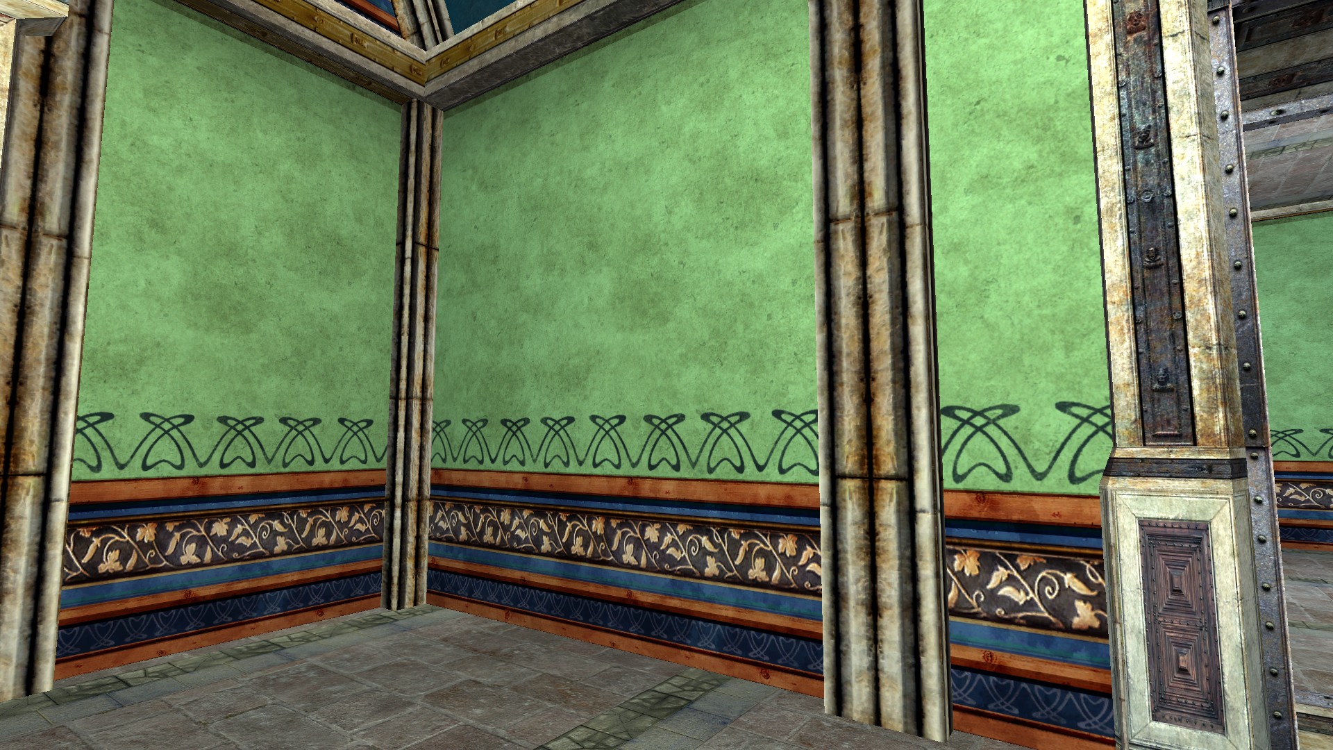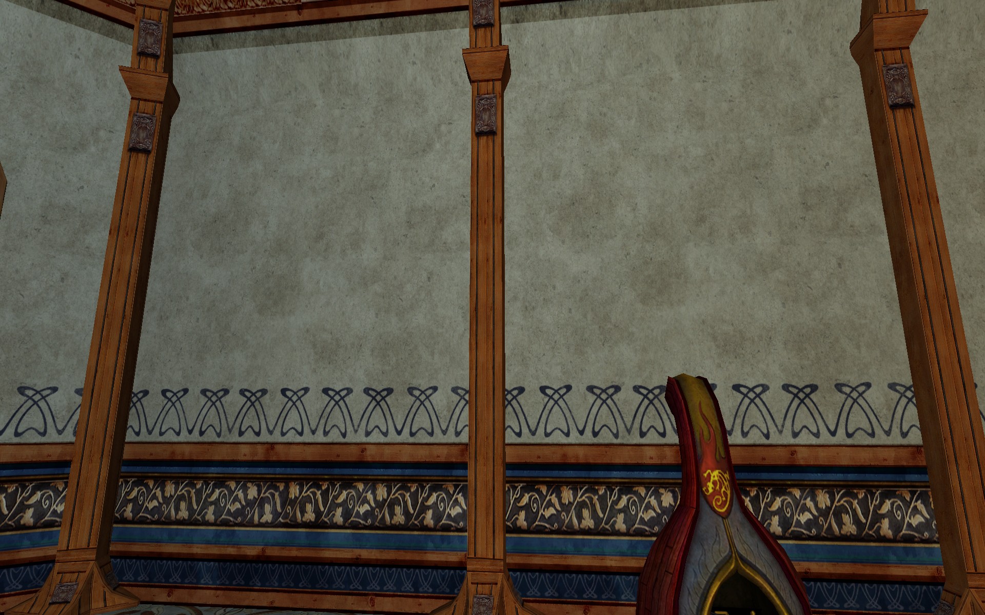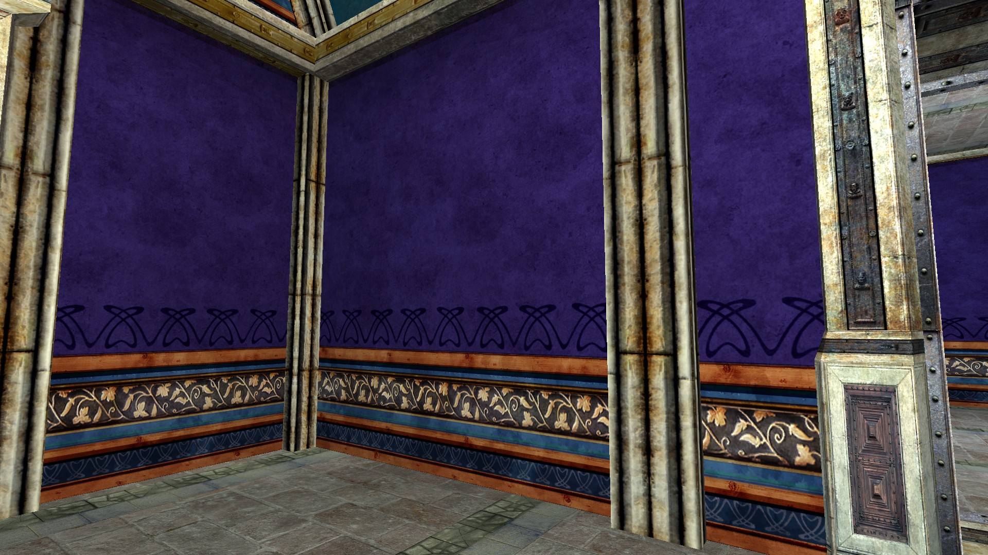 "An Elven leaf plaster wall. This is the default wall pattern for houses in the Duillond Homesteads."