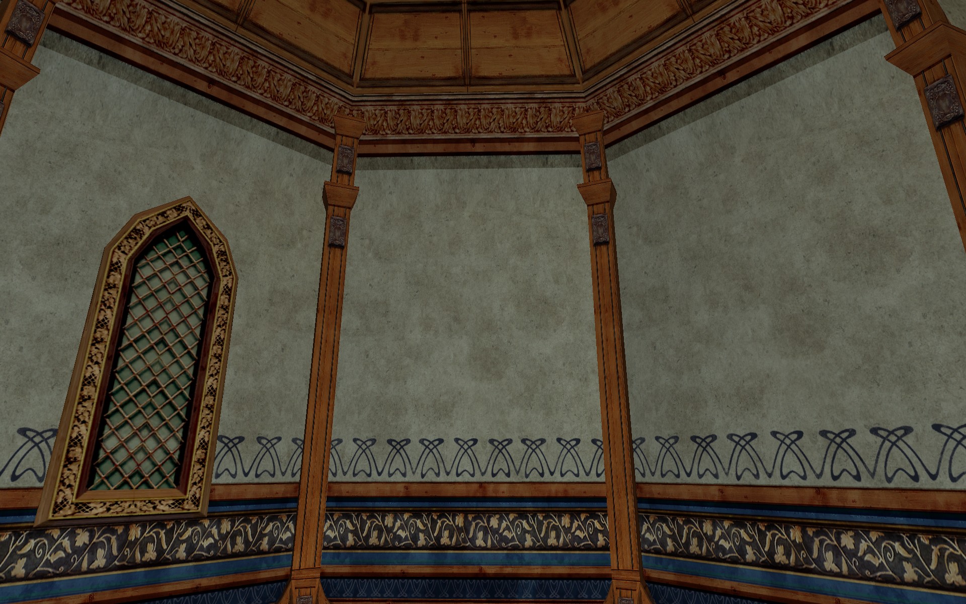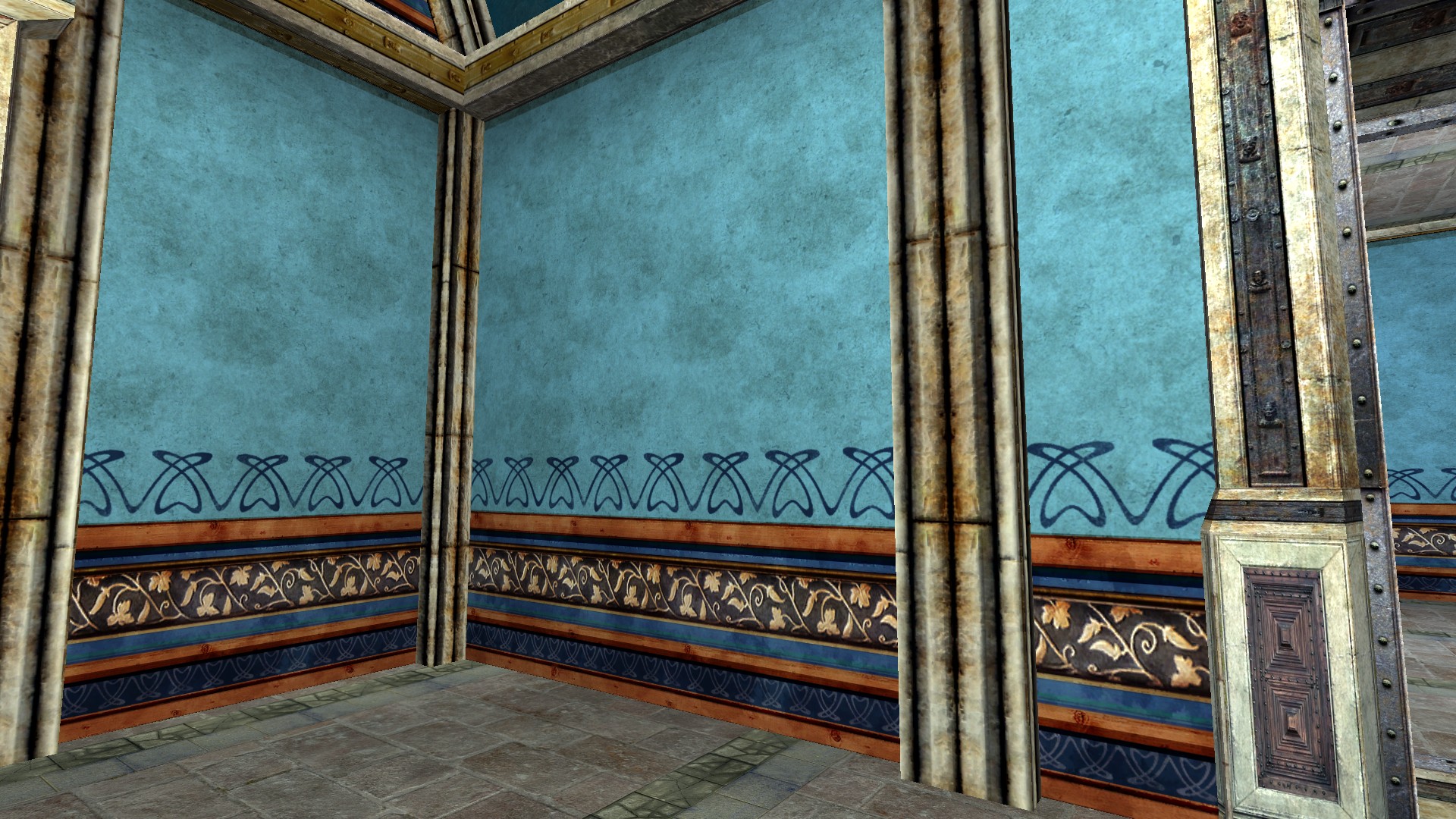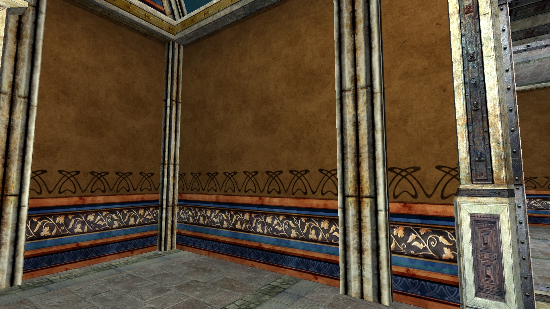 "An Elven leaf plaster wall. This is the default wall pattern for houses in the Duillond Homesteads."