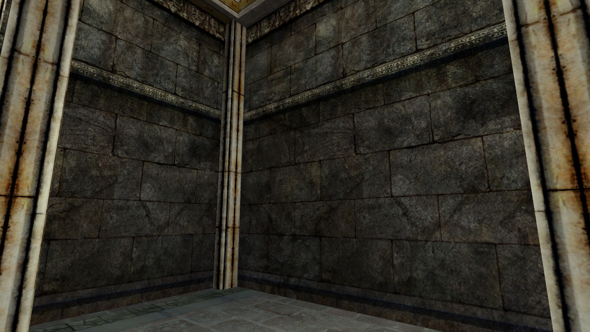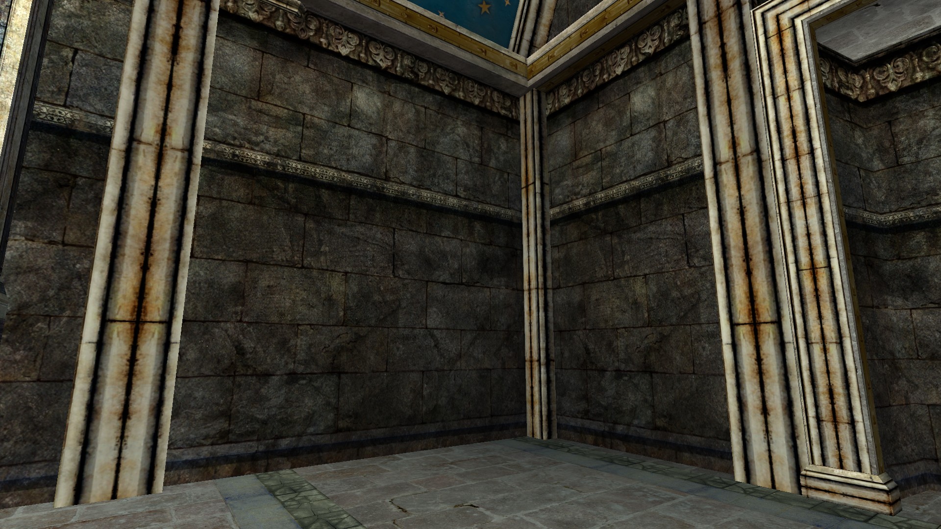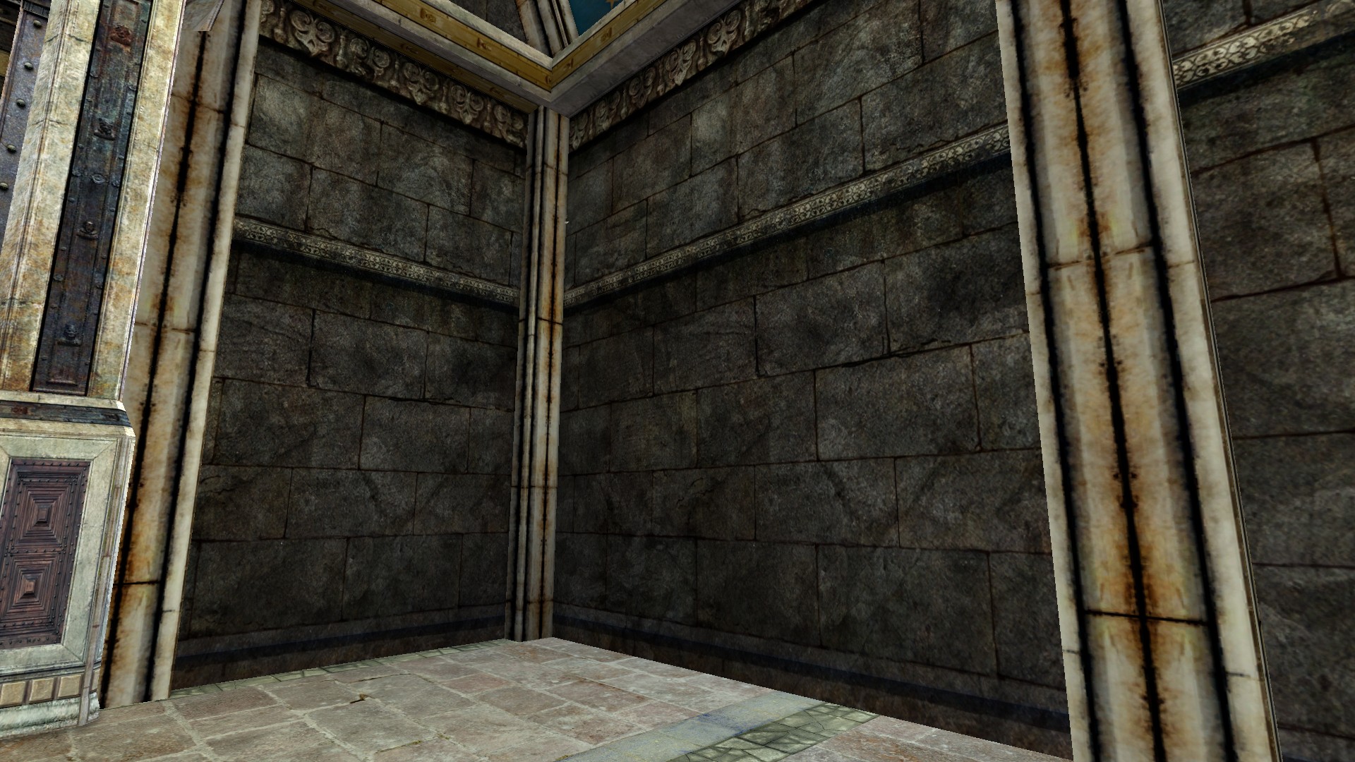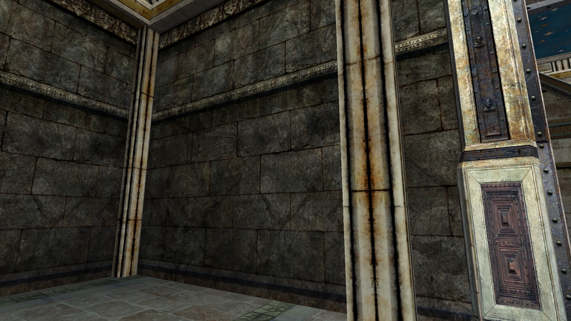 "A stone Wall with ornate decorations."