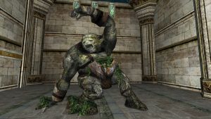 "An oxidized statue of a Dwarf ready for battle."