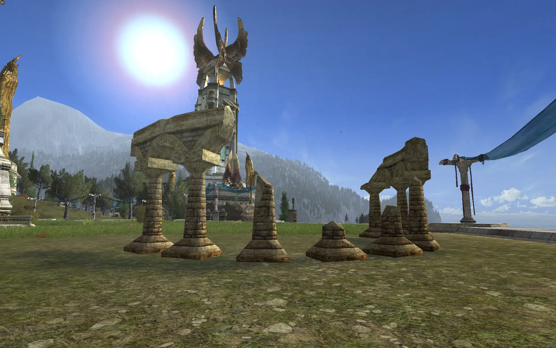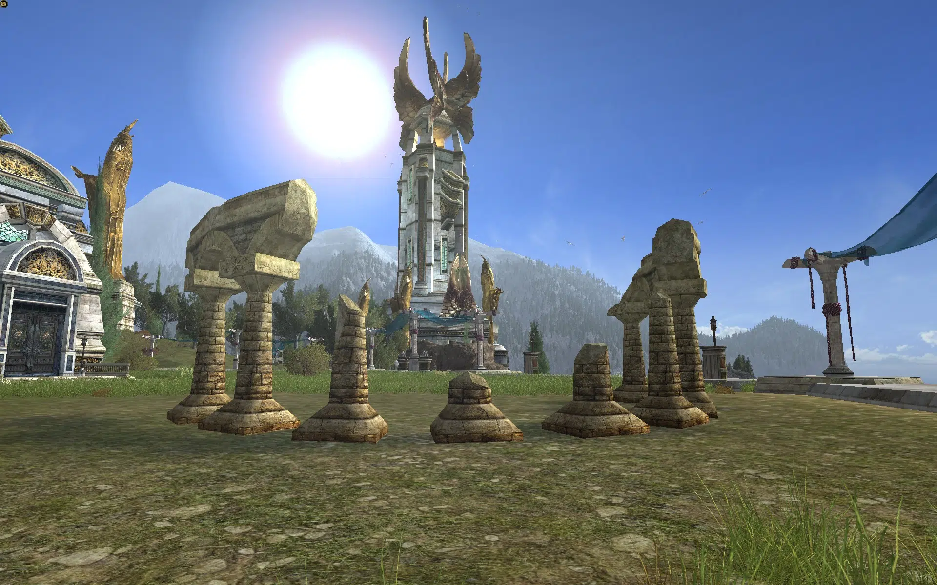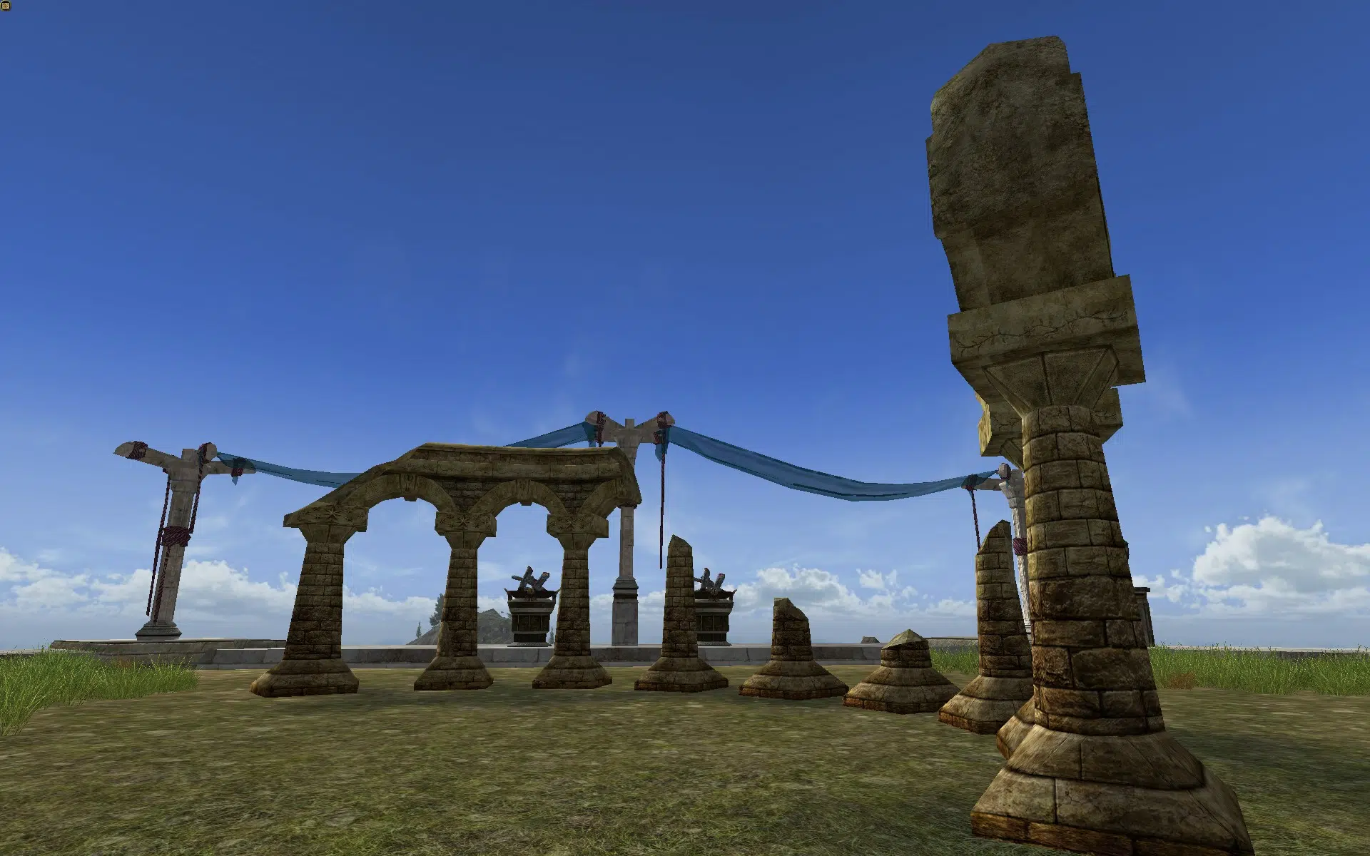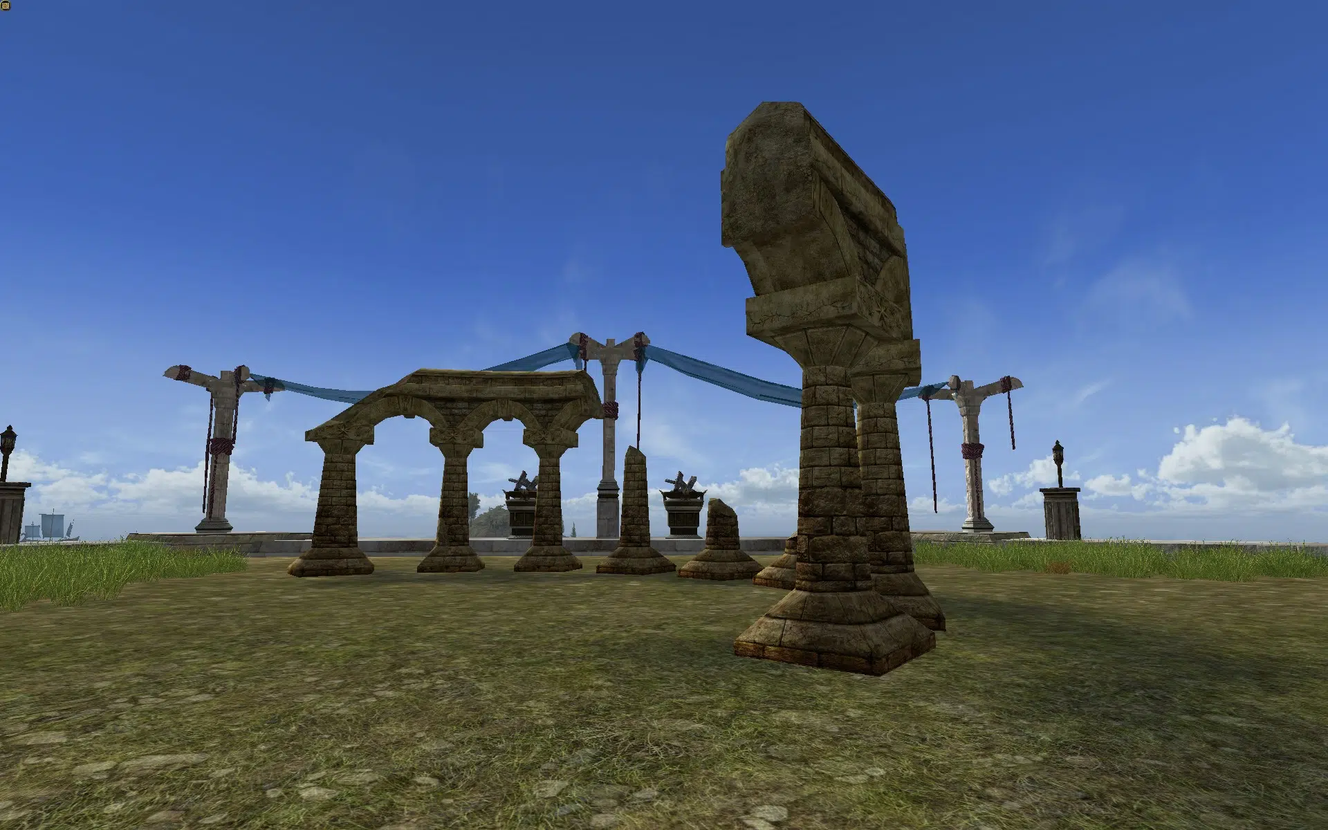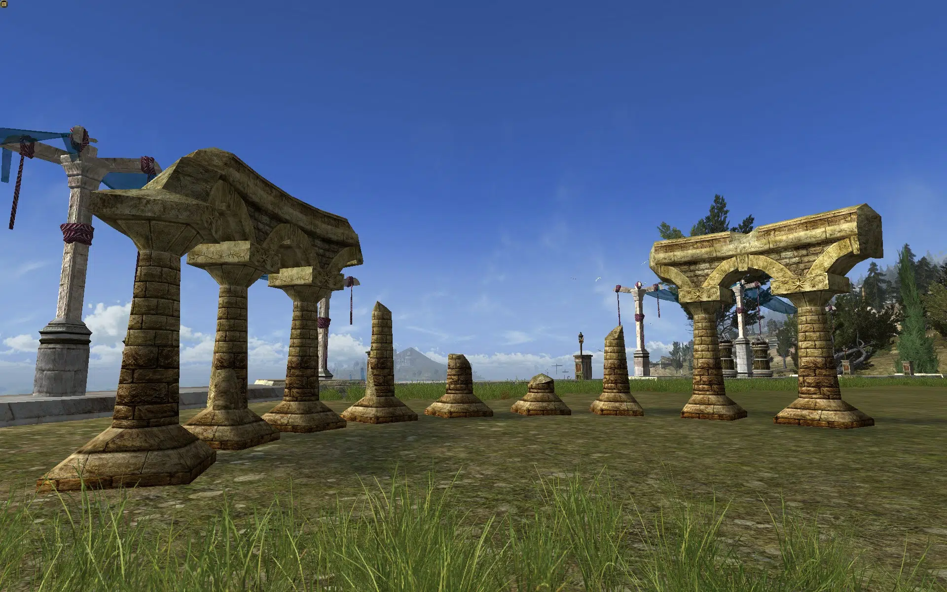 "Nine ruined stone columns, standing in a semi-circle."