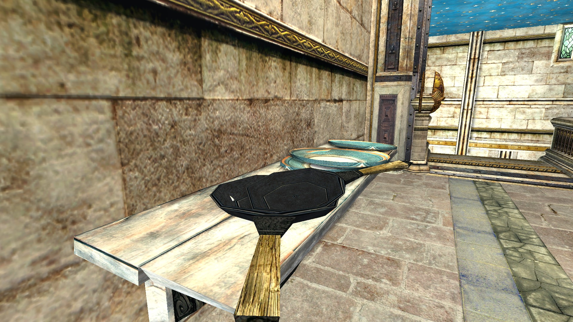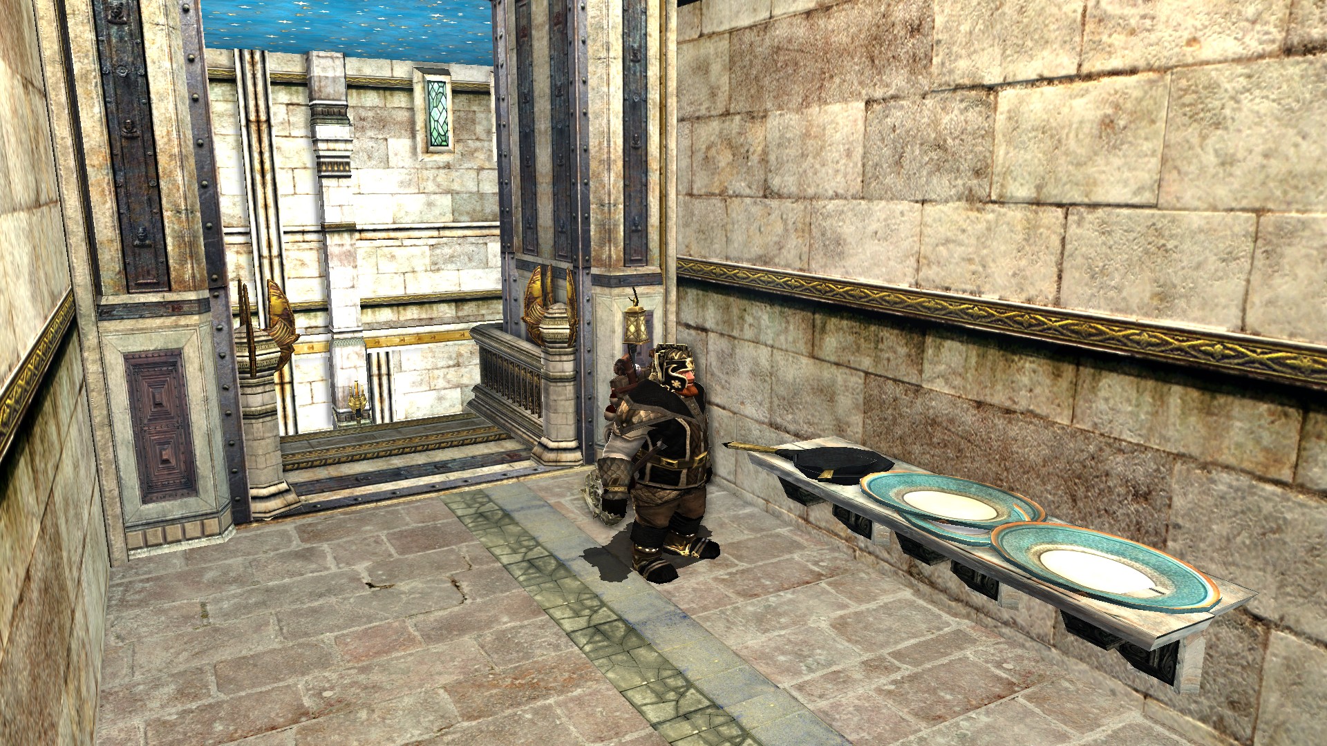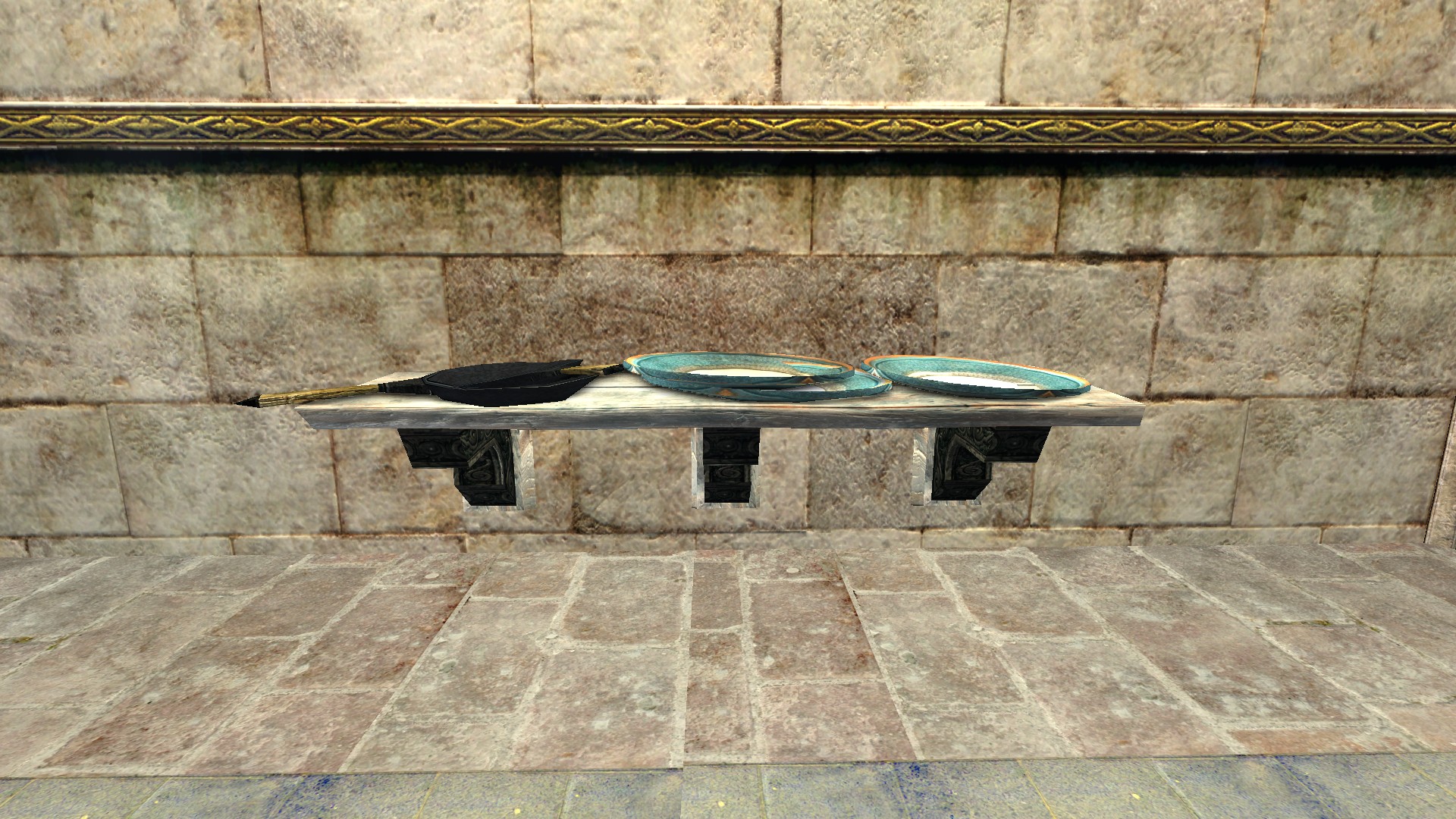 "A shelf of pans and platters from Gondor."