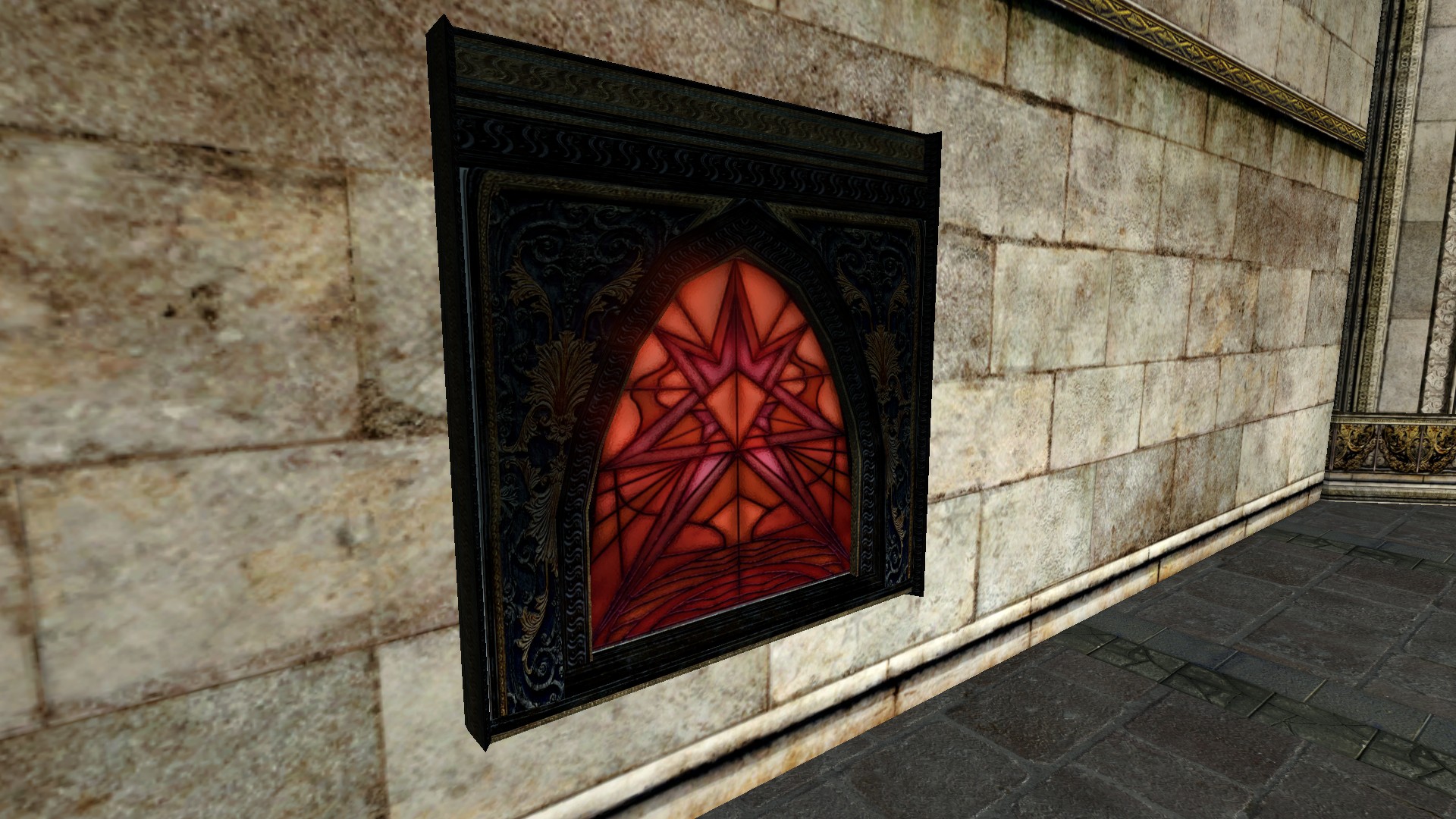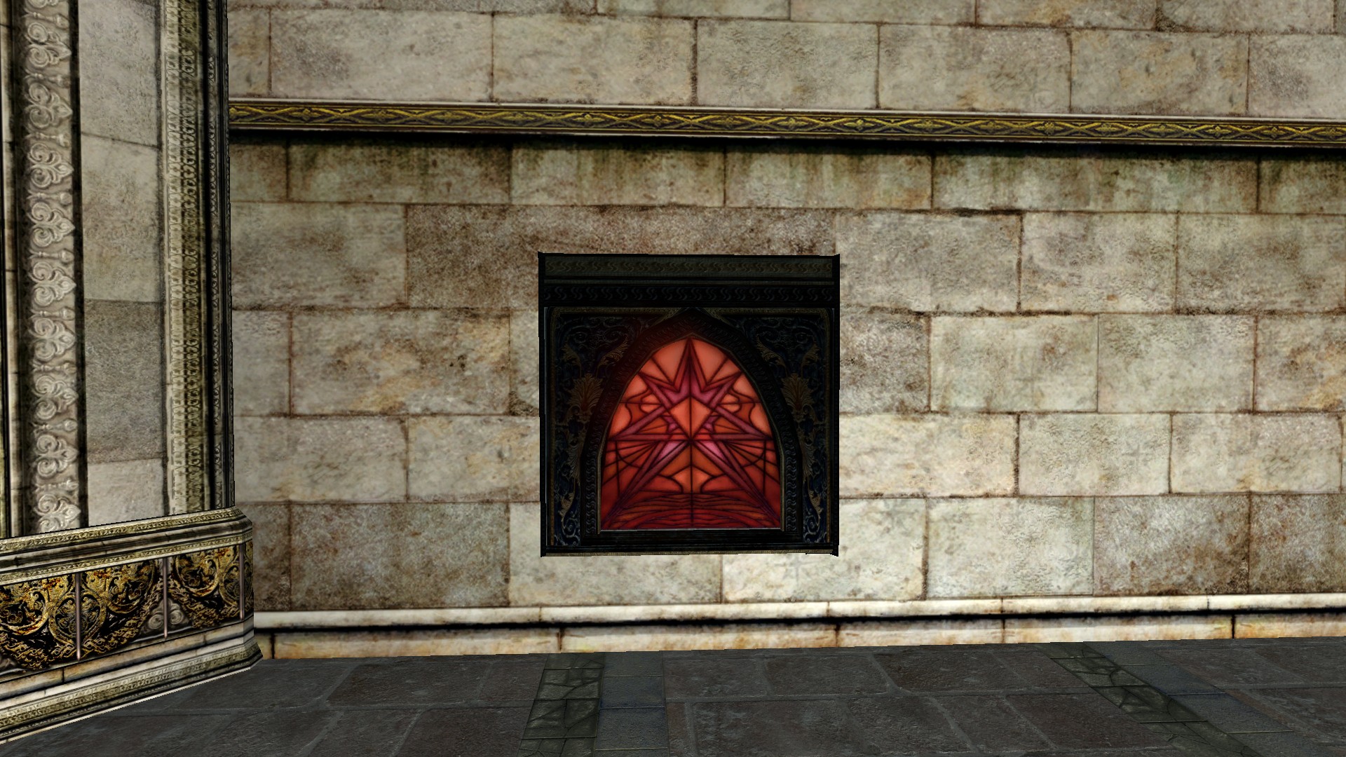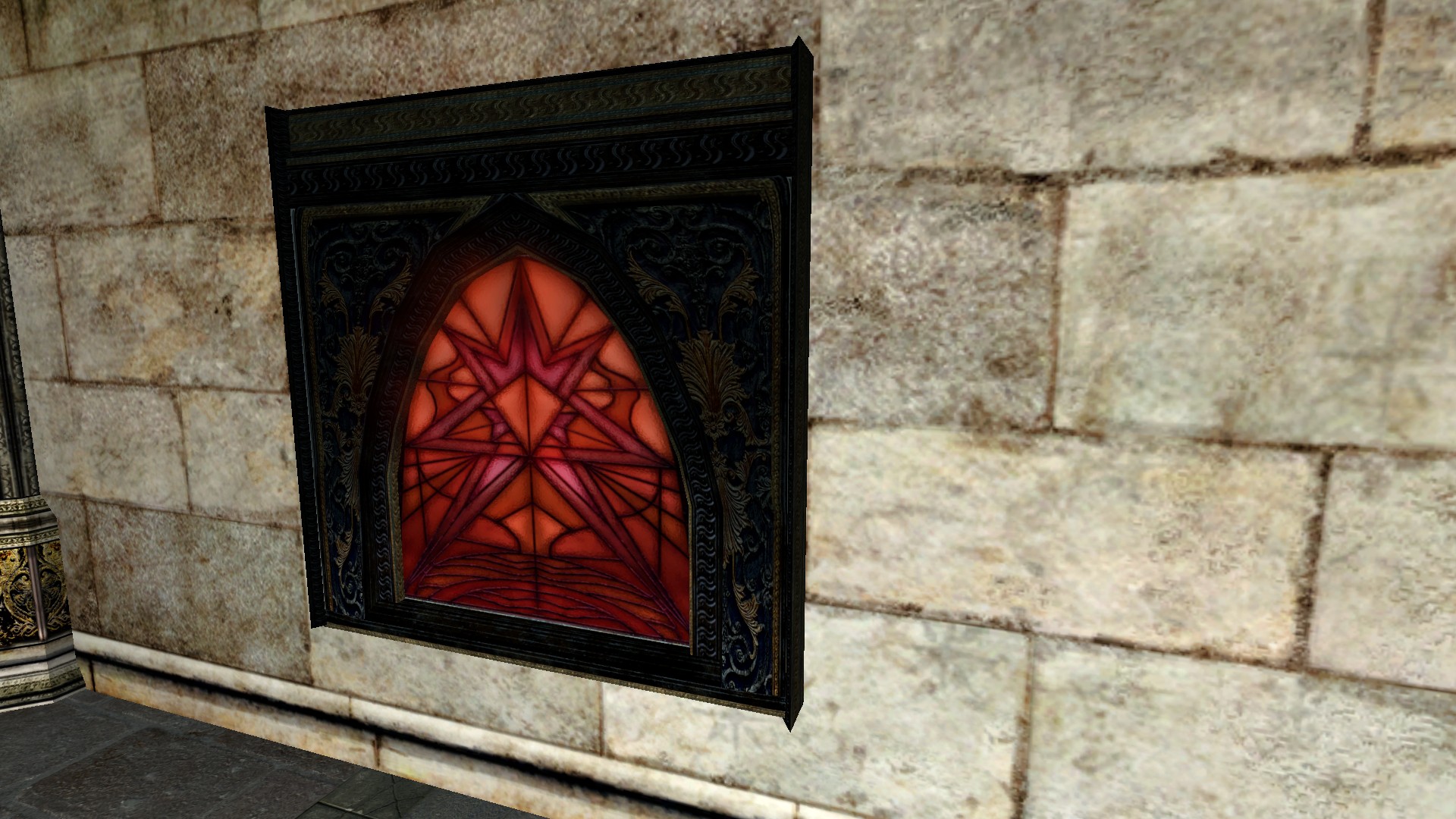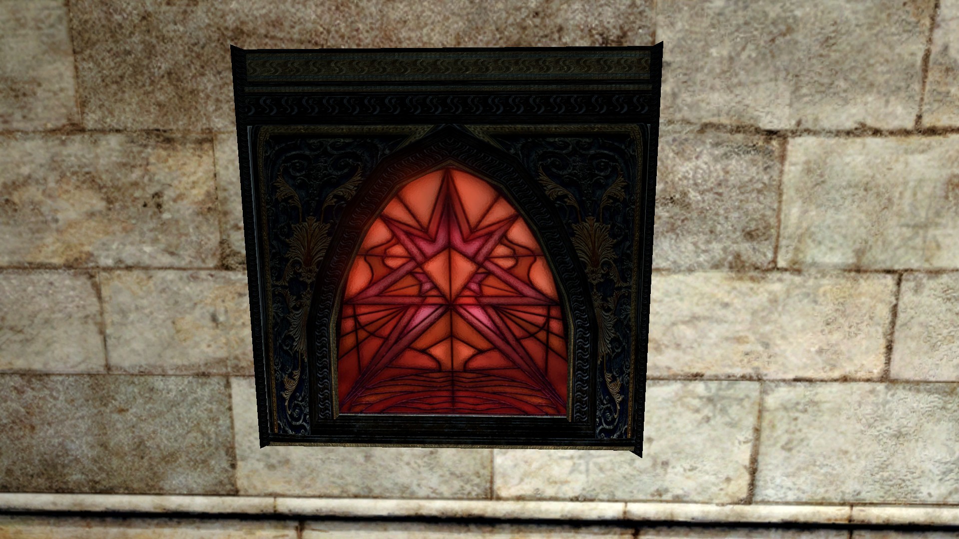 "A beautiful red stained glass window."