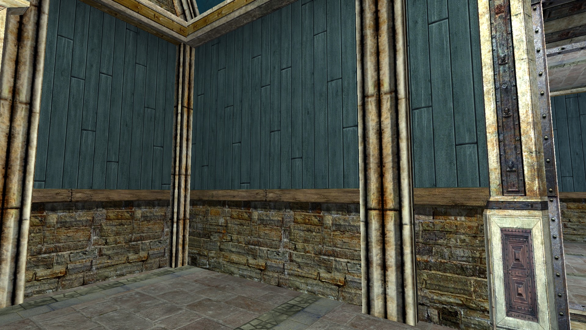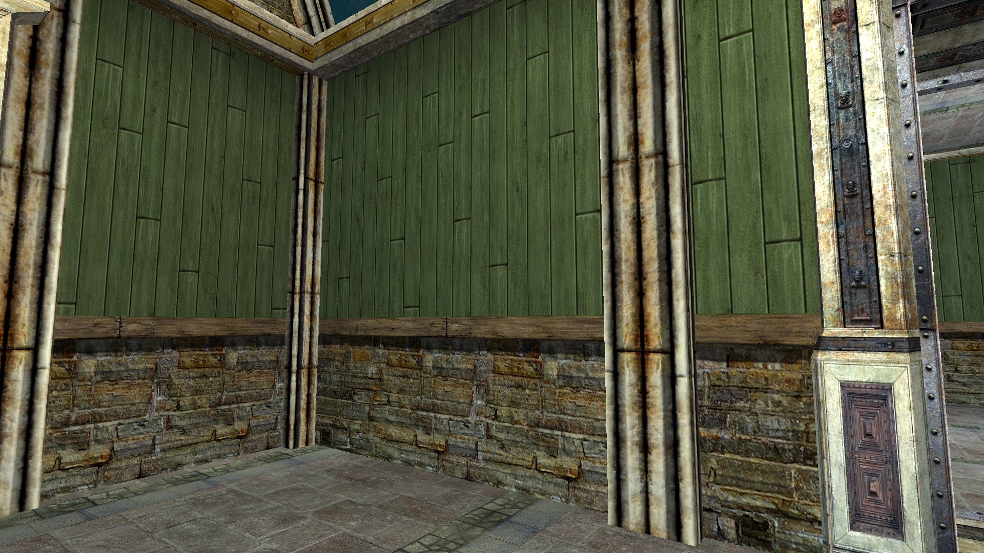 "A common wood-plank stone wall."