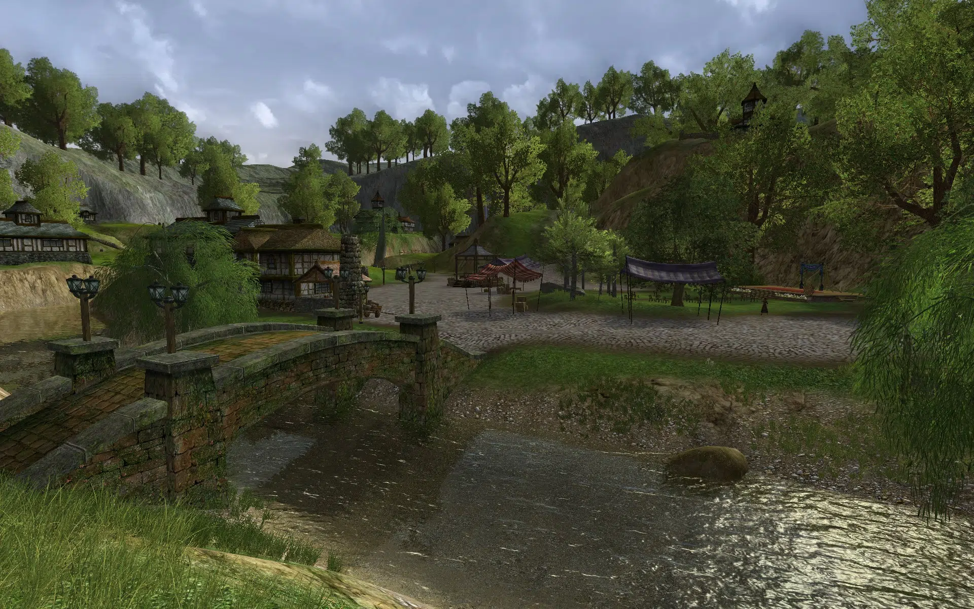 Directions: From Duillond, take the road leading to the Shire, south. A little further on, after you cross the bridge, you will find, on your right, the entrance to the Elven housing district.