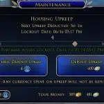 - Once the last upkeep has been consumed, your house is locked (inaccessible decoration items, inaccessible house, unusable travel skill, secure locker). You will have to pay the upkeep but also a restoration fee so you can re-open your house. Once the house is reopened, you will find it in its original state.